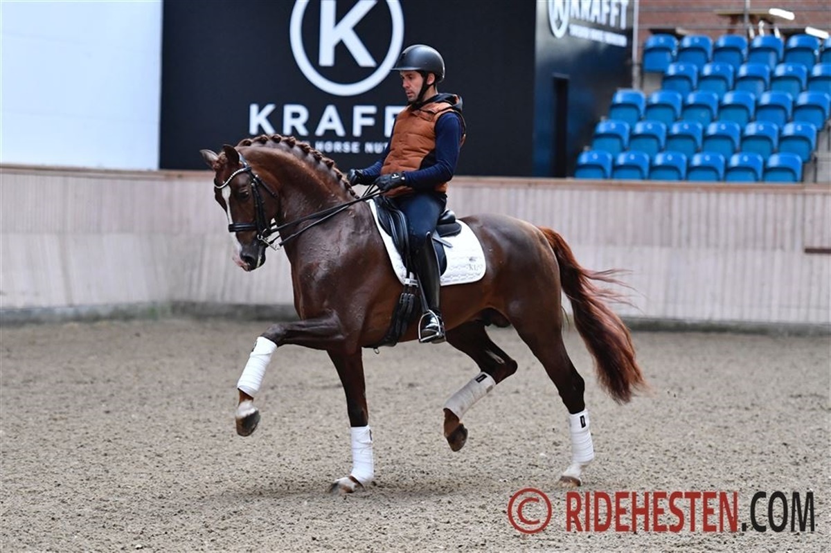 De to ældre hingste blev begge fremvist under rytter. Den 4-årige Blue Hors Kingston e. Glock’s Toto Jr./ Turbo Magic (redet af Cristian Tudela Ruiz) har aflagt 50-dages materialprøve i Holland (som årgangens nr. 2 i dressur). Han blev færdigkåret i Dansk Varmblod, og avlskonsulent beskrev hingste som bl.a. velrejst og harmonisk og med sine styrker i skridt og galop.