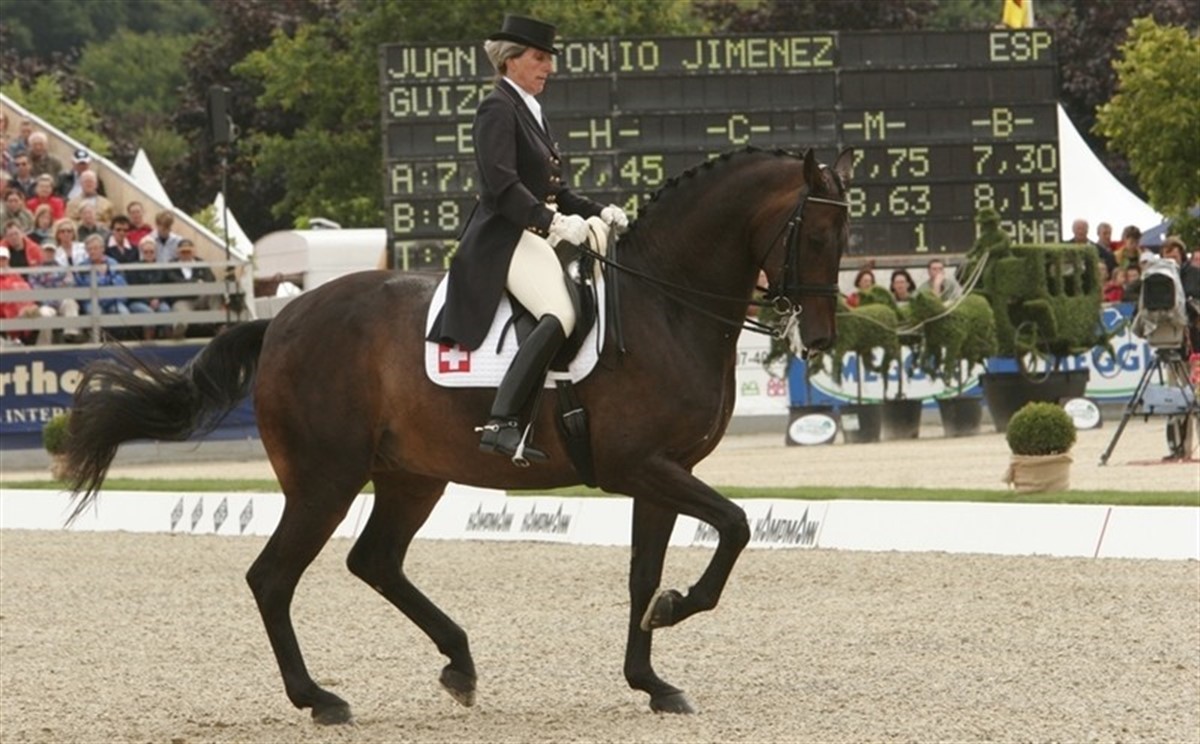 Det drejer sig naturligvis om den schweiziske førstedame, Silvia Iklé, der fornyligt skabte røre i dressurens andedam ved at udtale, at ingen af hendes heste kommer til OL i Hong Kong, hvormed hele det schweiziske dressurlandshold brast. Nu har den 59-årige toprytter været så uheldig umiddelbart før hendes planlagte deltagelse ved CDI-W Amsterdam i denne uge at have have brækket benet. På sin ejendom i Niederhasli, Schweitz, underviste Iklé forleden sine elever og var uopmærksom på en ujævnhed i ridehusbunden og faldt på uheldigt, at hun brækkede det ene ben tre steder. Det komplicerede benbrud førte naturligvis til omgående indlæggelse og Iklé er nu ude af topsporten i flere måneder. Næsten ironisk at en så travl rytter brækker benet uden, at der er så meget som en eneste hest involveret. Kilde : Eurodressage.