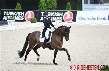 Britiske Charlotte Dujardin er igen i gang med at uddanne en ny tophest, efter at KWPN-vallakken Gio e. Apache/Tang blev solgt sidste sommer. Med den 9-årige vallak, Imhotep e. Everdale/Vivaldi vandt Dujardin i sidste weekend både Grand Prix og Grand Prix Special med henholdsvis 77,76% og 78,36% og det ser ud til at ekvipagen er et godt bud til det hold som England sender afsted til VM i Herning til august.
