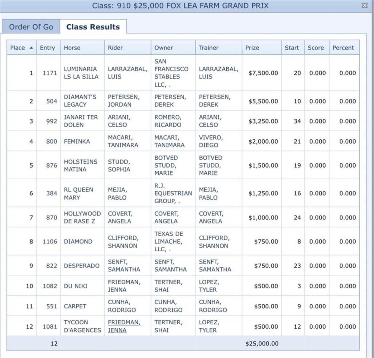 Siden januar 2020 har Sophia og Matina været et par, og i dag har de haft deres debut i Grand Prix. Klassen $25,000 Lea Fox Farm Grand Prix havde 40 startende ekvipager, hvoraf 10 gik videre til omspringningen. Her var Sophia og Matina igen fejlfri, og deres tid rakte til en femteplads.