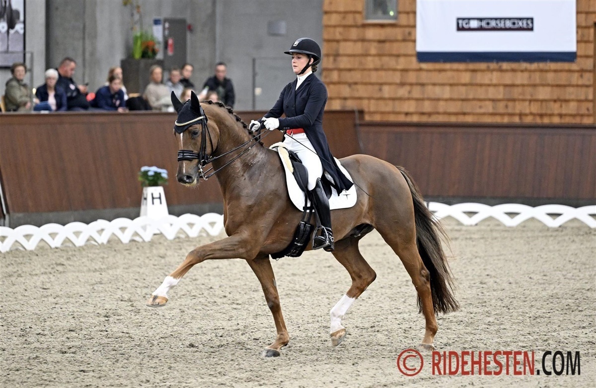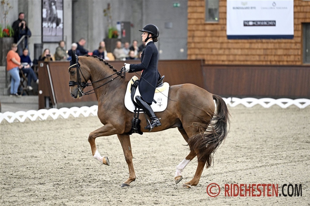 Parret havde på Blue Hors i aften en virkelig stabil og flot tur med rigtig mange højdepunkter, hvor Vividus var utroligt fokuseret på sin rytter og opgaven. Det ses tydeligt, at den mørkerøde vallak virkelig har talent for de samlende øvelser, og i kombination med Cathrine, der bare er vanvittigt dygtig til at høste karakterer hele vejen rundt i programmet, blev det til den sejr med hele 76,272%.