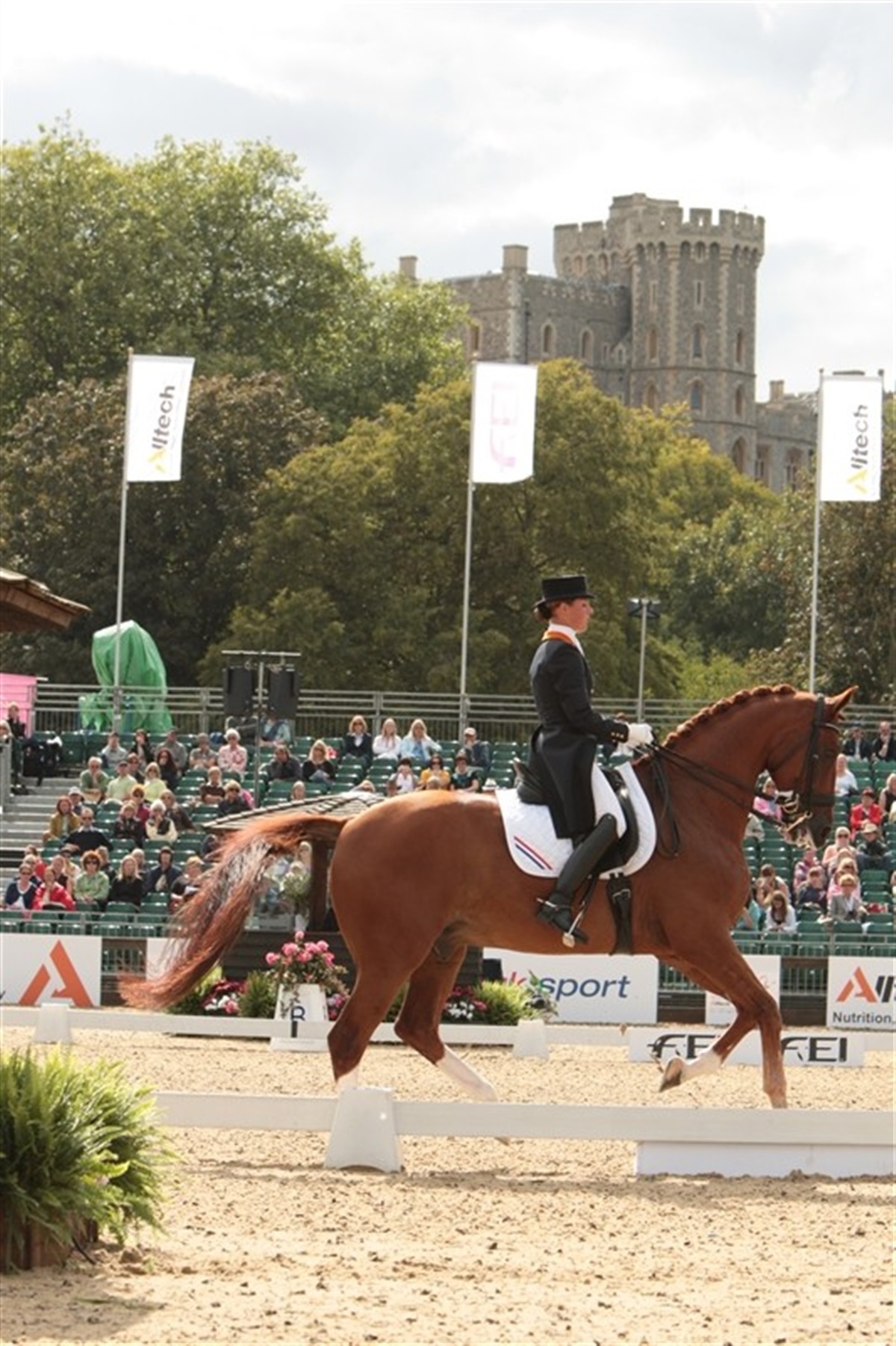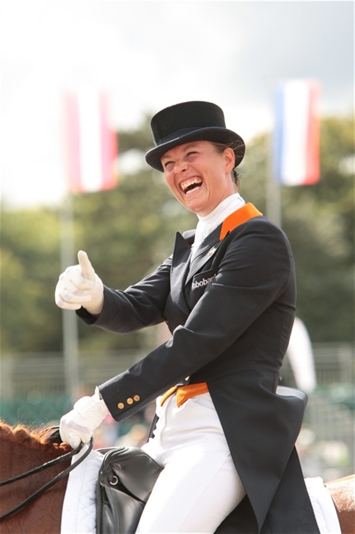 Hollænderne har sat sig godt og grundigt på dette europamesterskab, hvor Adelinde Cornelissen og Parzival fører inden morgendagens konkurrence foran sin landsmand Imke Schellekens-Bartels og Hunter Douglas Sunrise. Forud for mesterskabet havde de fleste vel regnet med, at hollandske Edward Gal og den nye stjerne på dressurhimlen, Moorlands Totilas skulle dominere mesterskabet, men i dag så vi Adelinde Cornelissen og Parzival danse gennem Grand Prix programmet, spændstig, velrejst og med en emorm energi og udstråling. Jazz-sønnens piaffer var imponerende, på stedet, rytmiske og energiske med super overgange. De var i høj grad en nydelse at følge på banen og sikkerheden selv i alle dressurens øvelser. Adelinde 30 år, der mesterskabsdebuterer på det hollandske landshold, startede sin karriere som ponyrytter med flere hollandske mesterskaber i bagagen, inden hun som 18-årig fik sin første hest. Med ham red hun både dressur, springning og military, men det er først med Parzival, at hendes karriere for alvor har taget fart på dressurbanerne. Vejen mod stjernerne har ikke været uden forhindringer, for Parzival har været ganske vanskelig, især fordi han de første år let blev bange for omgivelserne. I slutningen af 2006 red hun sin første Grand Prix på Parzival, og få måneder senere blev parret hollandske indendørs mestre. I 2007 sluttede parret lige efter Anky van Grunsven i det hollandske mesterskab, og i 2008 vandt Adelinde og Parzival det hollandske mesterskab. De var storfavoritter til at vinde World Cup-finalen i Las Vegas, men på opvarmningen fik Parzival en skade, og det var derfor et meget glædeligt gensyn med ekvipagen ved EM.