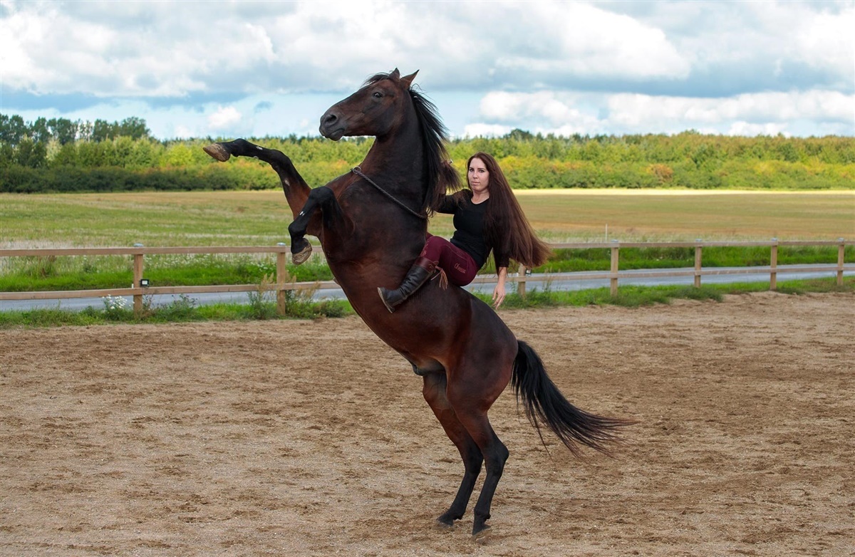 – For mig er målet med min træning, at jeg har glade heste, som har det godt både mentalt og fysisk. At de gerne vil samarbejde og selv byder ind med ting de vil lave. At de selv søger mit selskab, uanset om vi skal lave show sammen eller bare slappe af og hygger os i hinandens selskab derhjemme. Når vi giver hestene lov til at være heste, så stråler de og har en skønhed, når vi optræder, som der ikke er noget udstyr i verden, der kan hamle op med, fortæller Charmaine Berdino.