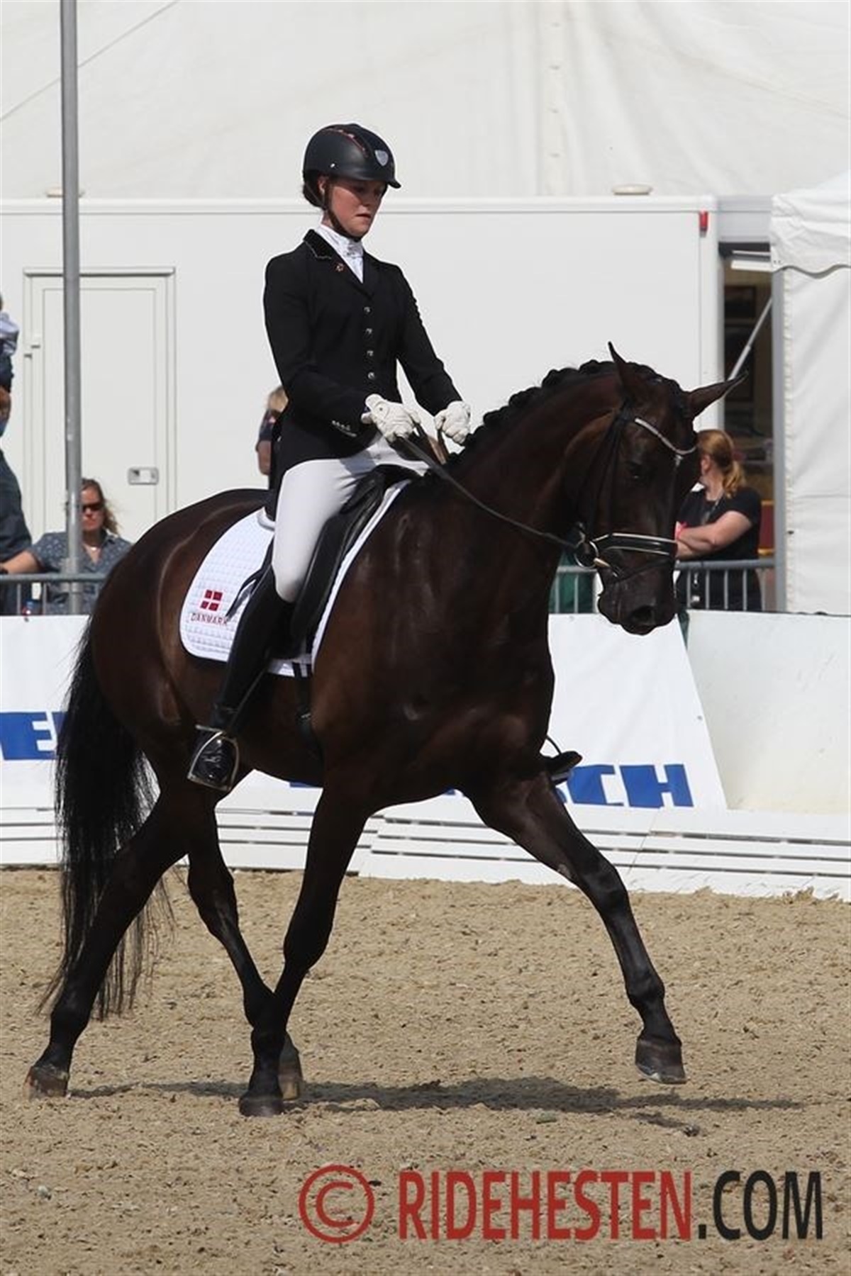 Kl. 10:49: Katholt’s Bossco e. Blue Hors Don Schufro / Michellino (opdr. Finn Kristensen) blev igen optimalt vist af Maria A. Andersen uden tydelig forbedring fra igår. Ekvipagen ydede det bedste de på nuværende tidspunkt er i stand til. Man kan savne større skulderfrihed og elasticitet i hestens gangarter, og det var netop det, som dommerne slog ned på. De roste naturligvis både flot ridning og særdeles stor ridelighed, men ønskede mere sving i traven og mere op-ad-bakke-tendens i galoppen. Den manglende skulderfrihed gjorde, at karaktererne til Bossco i dag var temmeligt lave, og det blev samlet til 7,08.