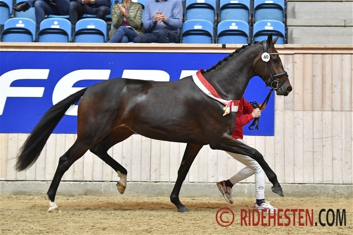 Titlen Årets Dressurbetonede Hoppe 2017 tilfaldt kat.nr. 40 Skovens Tzarina e. Blue Hors Zack/ Blue Hors Don Schufro (opdr. Kirsten Bjerregaard og Jens Lund Pedersen). Denne yderst betagende sportsmodel af en dressurhoppe er halvsøster til den kårede hingst og nordisk mester i dressur i år, Skovens Rafael, og bag dem ligger elitehopper i fire uafbrudte generationer.