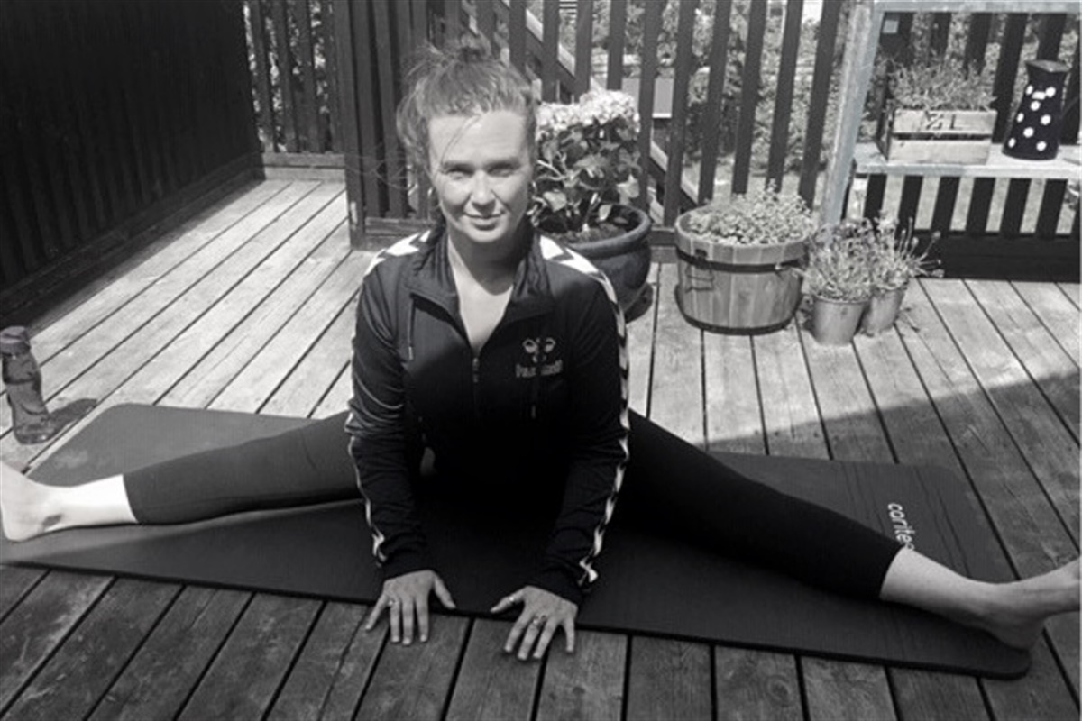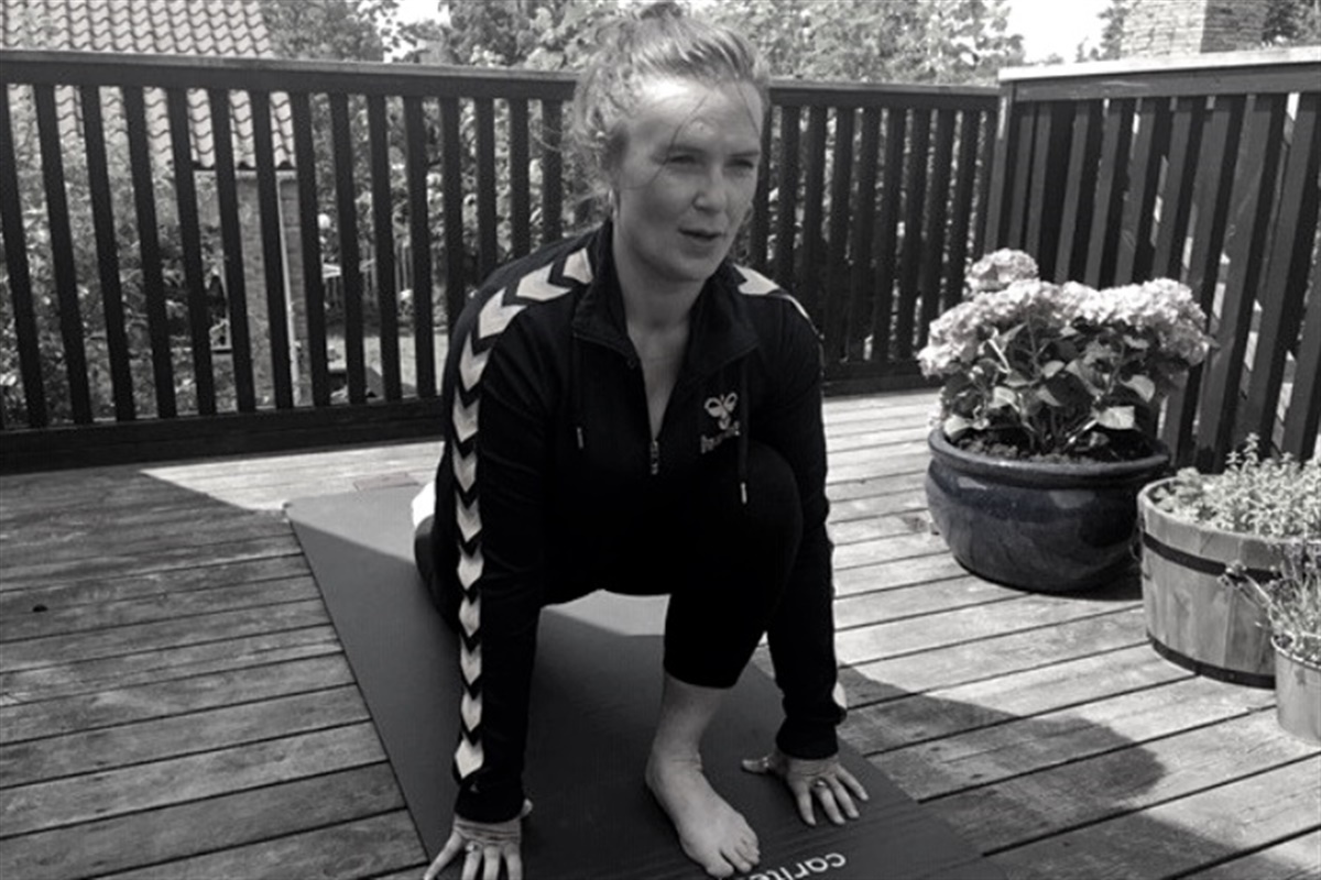 Det vigtigste er ikke, hvordan strækket ser ud, men at du kan mærke et stræk på indersiden af lårene, når du laver DragonFly. Hav eventuelt en pude eller en blok foran dig, som du kan læne dig fremad og støtte dig på, så du ikke overstrækker. Sæt benene ud til hver side, hold ryggen rank og hold strækket i gerne fem minutter, men minimum i to minutter. Der må på intet tidspunkt opstå en stærk eller skærende smerte i lænd eller i og omkring dine knæ, fortæller Sine Sønderby.