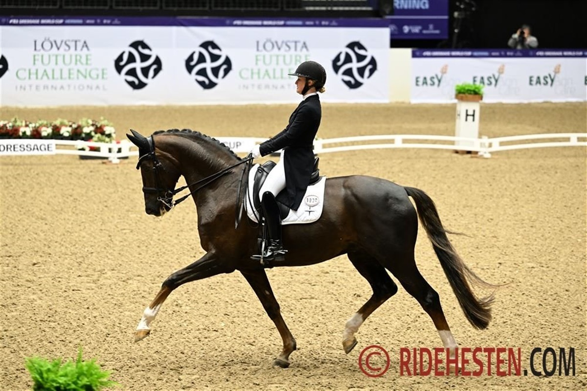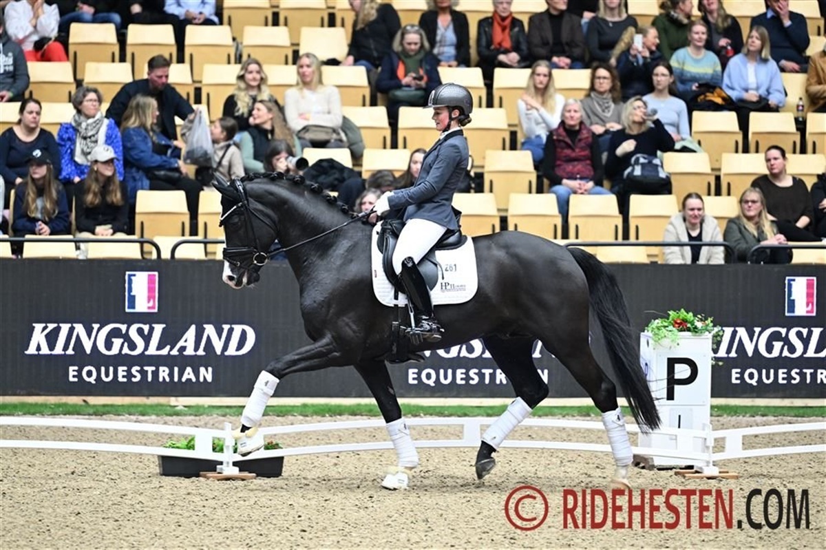 Det gjorde de foran intet mindre end tre tidligere Blue Hors-ejede heste. Michella Skovsager og dansk varmblodsvallakken Blue Hors Elliott e. Erlando/ Blue Hors Romanov (opdr. Julianelyst ApS), som blev nr. 2 med 148,638 efter en kür til 74,584%, Sofia Rosenkilde på Blue Hors Kingston e. Glock's Toto Jr./ Turbo Magic, som fik sammenlagt 146,124 og blev nr. 3 efter en kür til 75,584%, og Andrea Hamann Sand med Blue Hors Victor e. Vivaldi/ Stedinger, som opnåede i alt 145,531 og en fjerdeplads efter en kür til 74% ligeud.