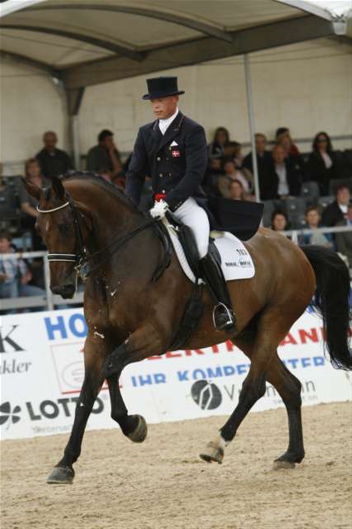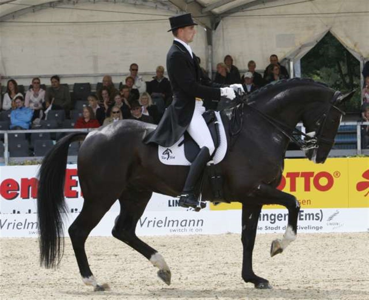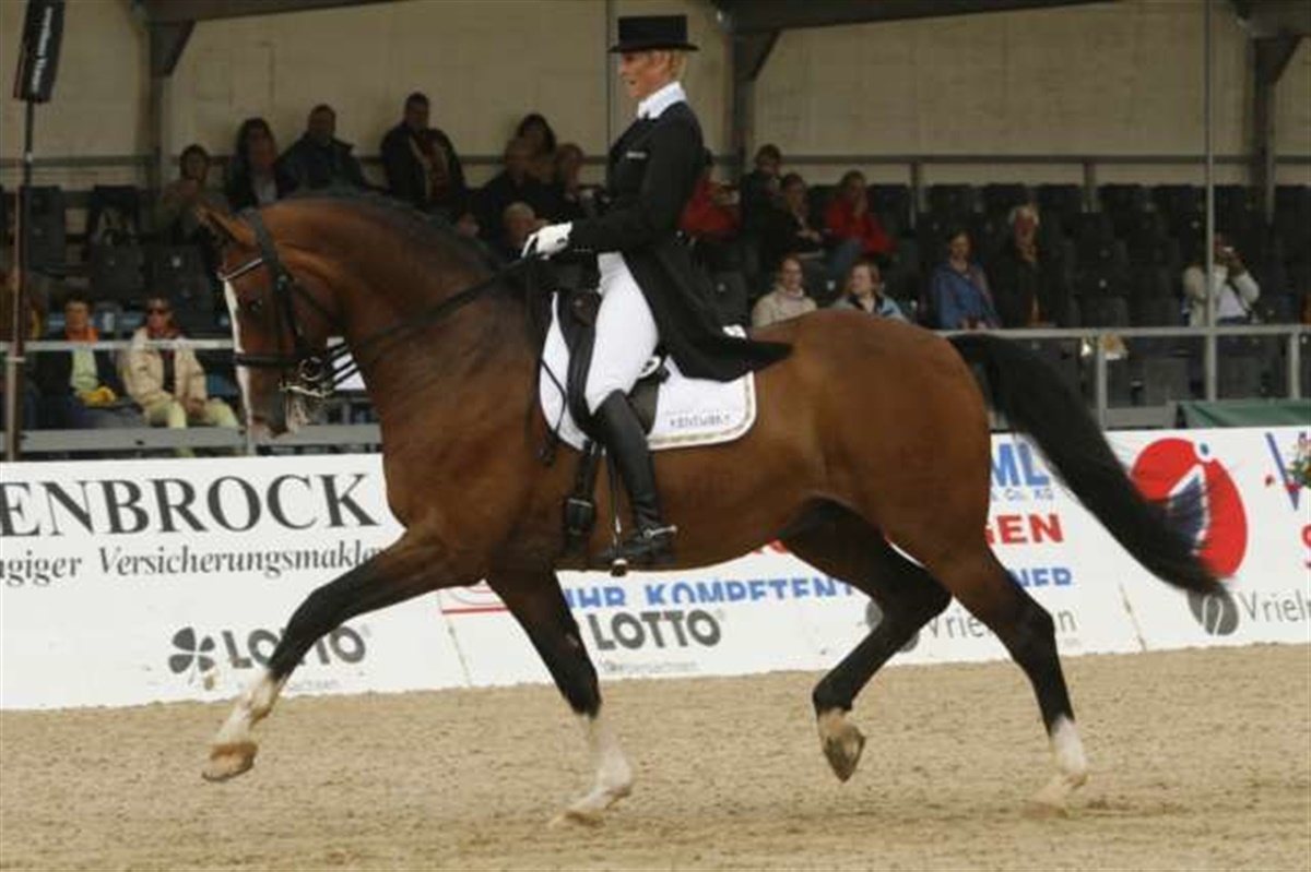 Andreas Helgstrand debuterede den kun 8-årige Gredstedgårds Casmir e. Continue i Grand Prix i Lingen. Den talentfulde hest vandt for to år siden det danske dressurchampionat og siden da har han været under uddannelse på Blue Hors. Casmir er en hest som Andreas Helgstrand selv har haft stor tiltro til igennem hele hestens uddannelse mod Grand Prix og den imponeredne 8-årige vallak indfriede alle forventninger i Lingen, da han gik til tops og kun blev slået med et mulehår af den Hubertus Schmidt og den erfarne 12-årige Andretti. Efter trav/passage/piaffe programmet lå Casmir og Andreas med over 75%, men hestens manglende rutine og styrke kom til at få indflydelse på galopprogrammet, som var uden egentlige fejl. Dommerne honorerede Casmirs passage med et 9-tal, og parret sluttede med 70,125% Joachim C. Thomsen og Mikado Engvang leverede et godt ridt uden egentlige fejl, der blev vurderet til godt 68% Sanne Henningsen og Clearwater S red et godt travprogram, men der indløb nogle småfejl i galopprogrammet og det kostede lidt points. Sanne sluttede med 66,3% - alle danskere er kvalificeret til Specialen i morgen middag.