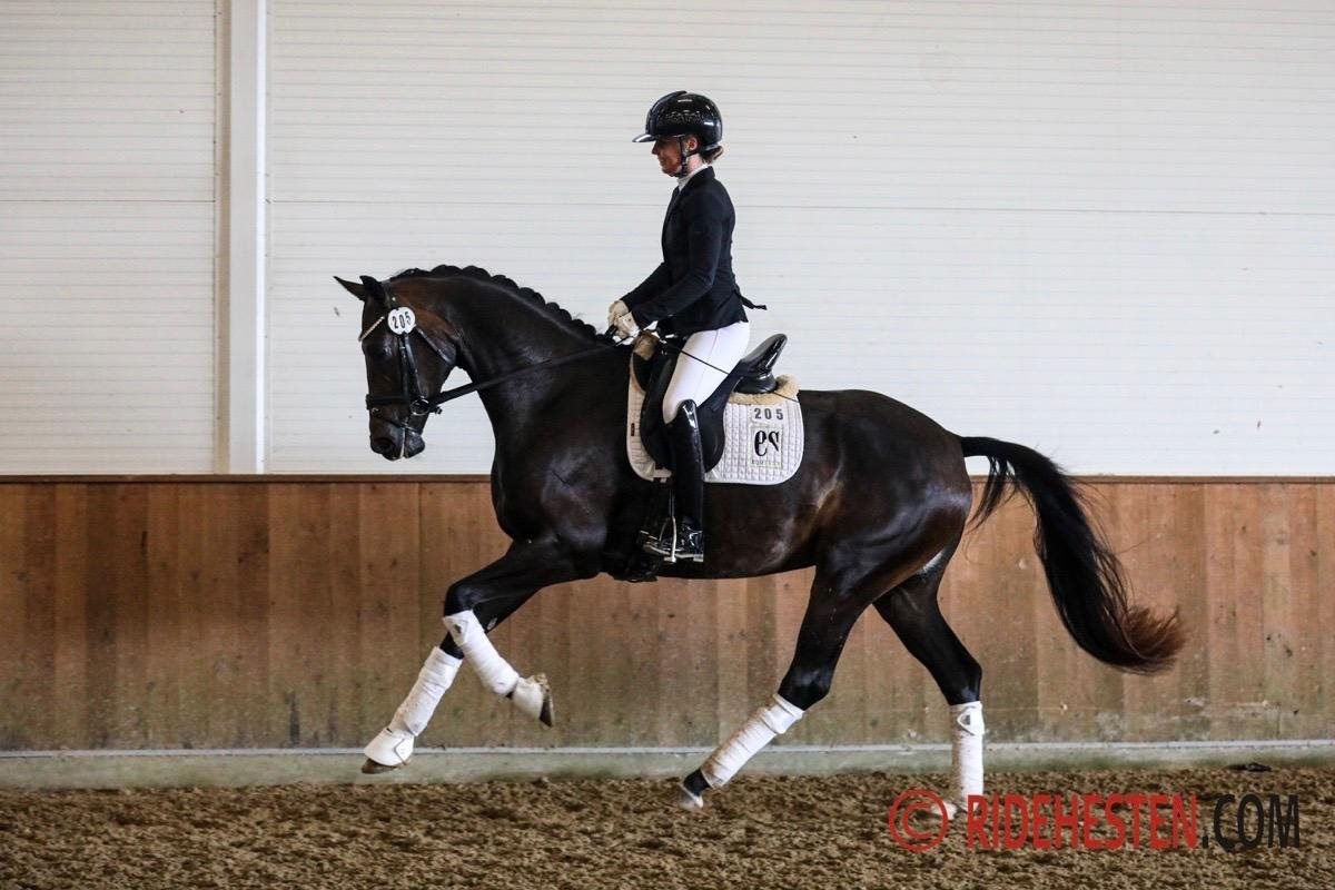 – En passende højtstillet hoppe med kønspræg, en dejlig feminin type. Taktfast og energisk skridt, traven er med god bæring og en galop som er den bedste gangart, vi har set på hoppen i dag, og det fik hun 8,5 for - samtidig viste hun god ridelighed.
