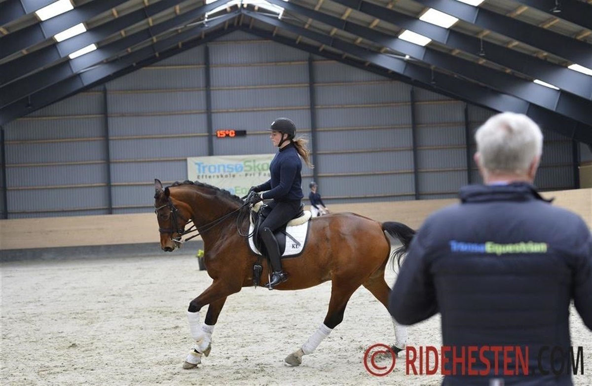 Publikum fik rørt lattermusklerne, da første indslag var en kæphestekvadrille udført af nogle af skolens elever. Bjarne Nielsen kommenterede, og det blev oplevelsen bestemt ikke mindre morsom af. Det lykkedes også at lokke Jens Trabjerg, eller nærmere, udøve store pression, på Jens, som så måtte trave rundt sammen med de øvrige ryttere i kvadrillen sammen med berider Stine Steffensen, som er ansvarlig for Tronsø Equestrian i det daglige. Både Bjarne og Jens underviser på skolen og som Jens fortalte, så er det noget han virkelig nyder, for de senere år er der kommet mange dygtige ryttere til stedet.