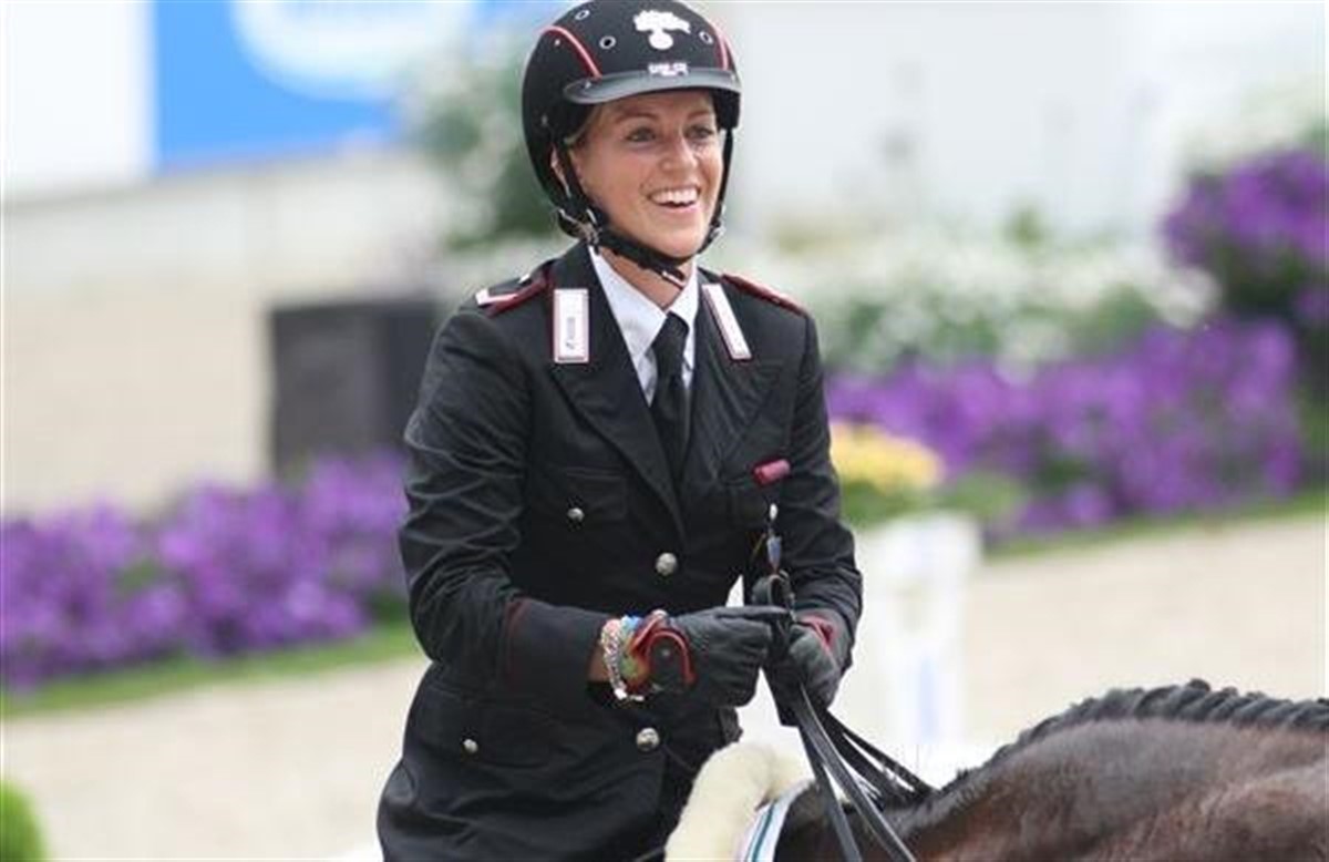 Under en national klasse med CDI-stævnet i Arezzo i weekenden blev Valentina Truppas 7-årige hest forskrækket på vej ind på banen, og det resulterede i, at Valentina faldt af og hesten styrtede – læs hele nyheden HER.