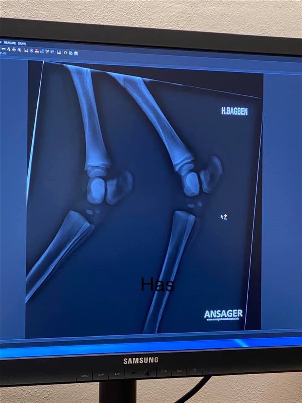 Torsdag morgen (d.18/3) ringer hun til Ansager Dyrehospital, som anbefaler hende at få de to hingsteføl røntgenfotograferet for at tjekke om forknæ og haser er underudviklet.