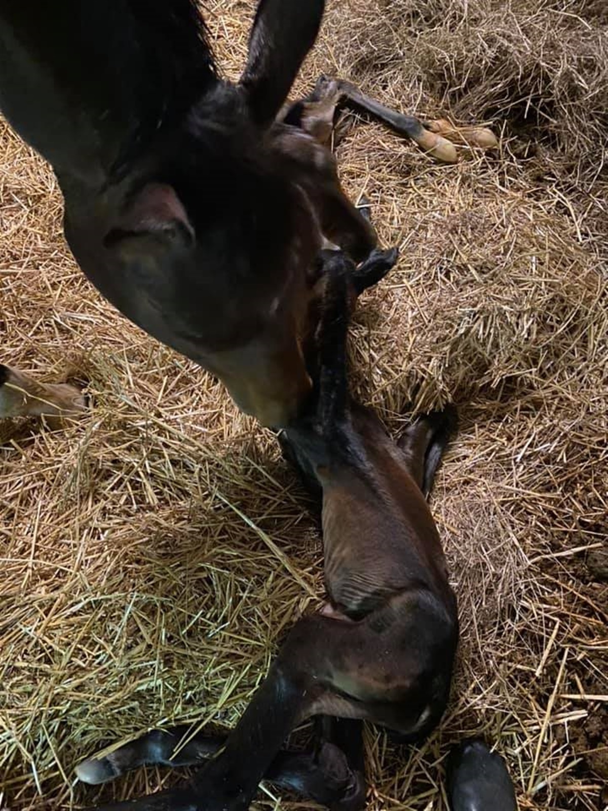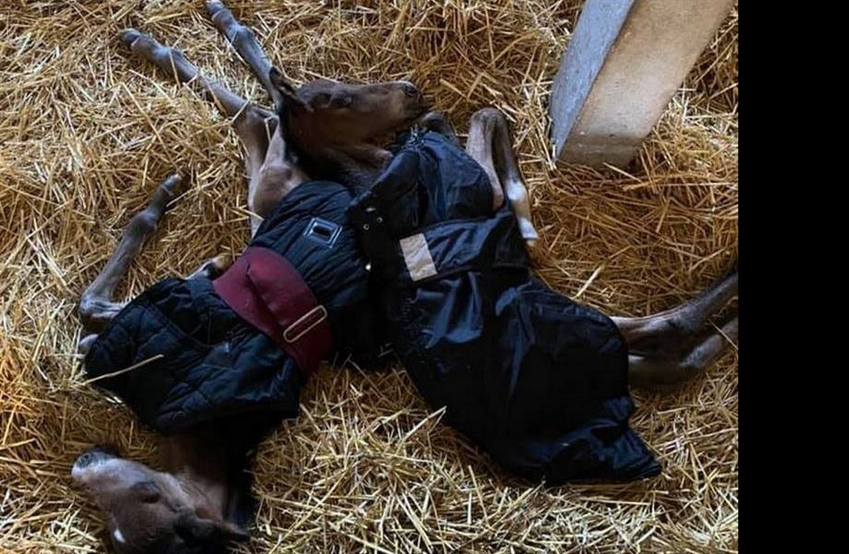 – Jeg vågner af instinkt natten til onsdag (d. 17/3) af lyden af en hoppe, som slikker sit føl. Det var Lambada, som jeg kunne høre gennem videoovervågningen. Jeg skyndte mig i stalden, og så at der lå to føl i boksen, hvor den ene stadig havde fosterhinde om næsen, siger Tina Skovby.