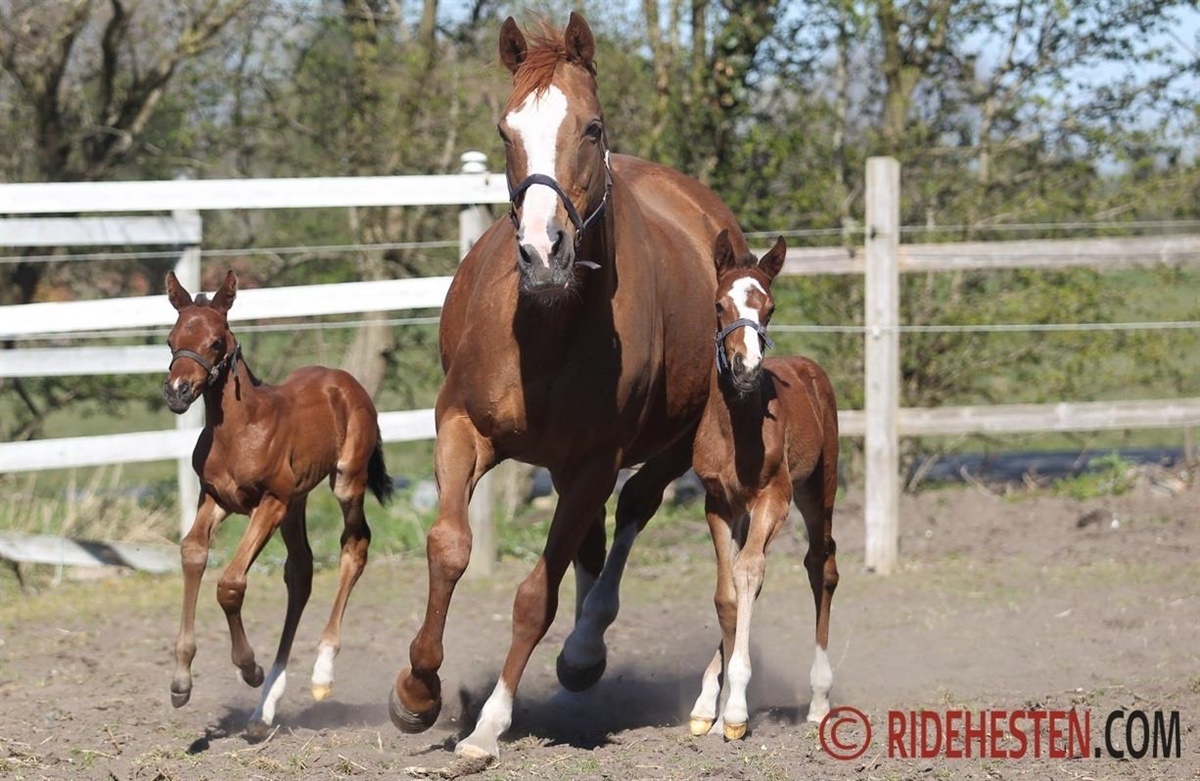 De to fuldblodshoppeføl, tvillingerne Sahara og Savannah, som Ridehesten.com tidligere har skrevet om, har været med deres mor, den 17-årige engelske fuldsblodshoppe Red Duchess, og deres ejer, den syngende hestehandler Kaj Rasmussen, Rørbæk ved Hobro, til eksteriørkåring i Dansk Varmblod.