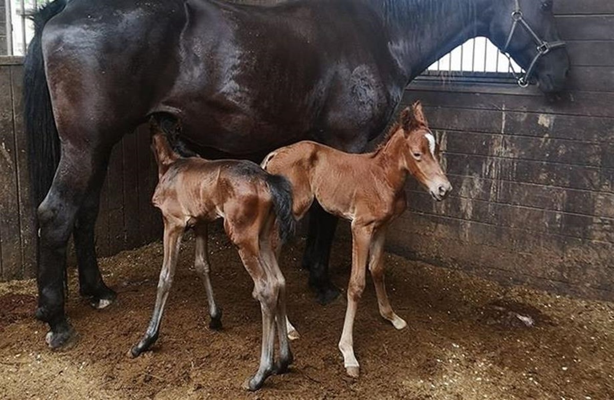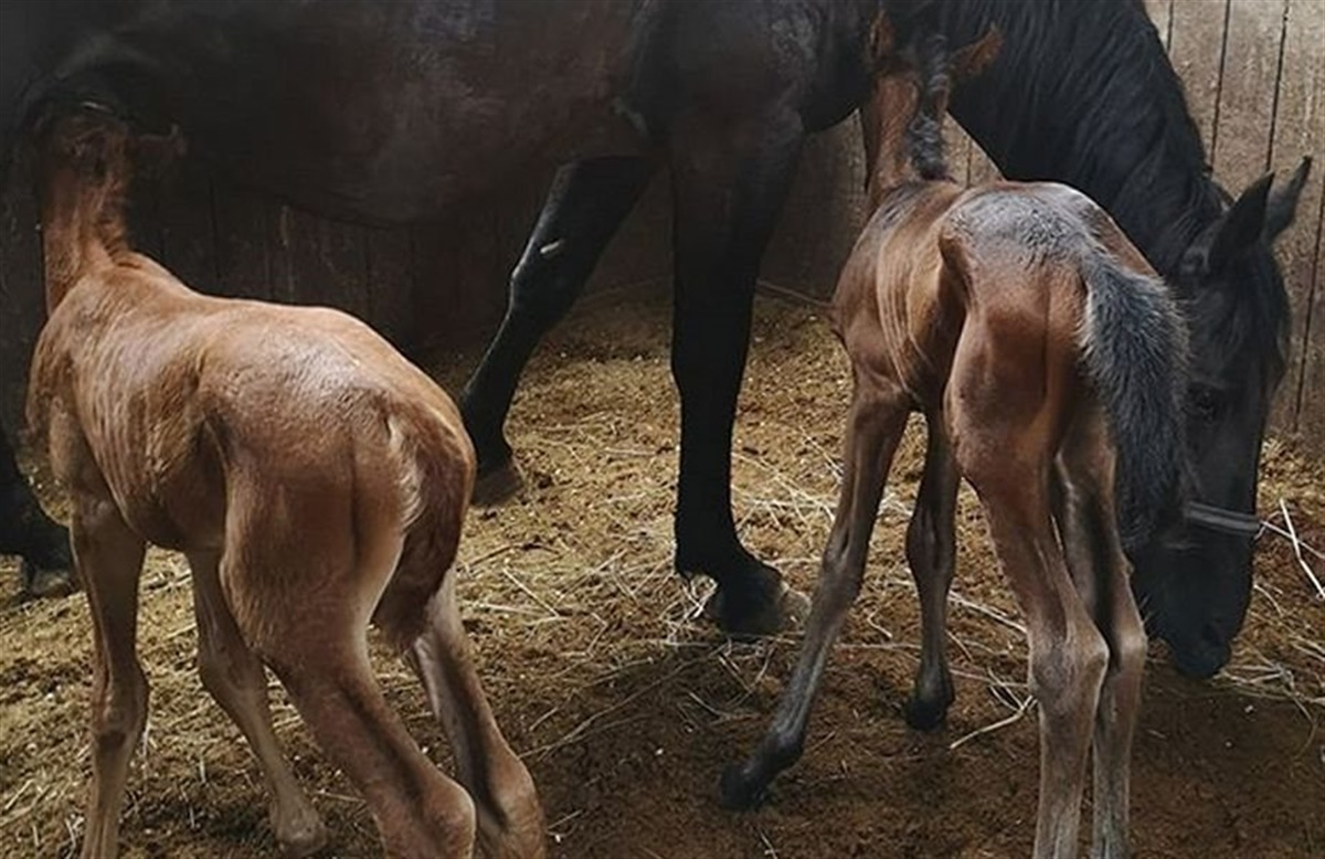 – Det skete så åbenbart ikke, for her til morgen kom disse to skønne og ædle hoppeføl til verden, fortæller Tine, der var lidt chokeret under folingen og fortæller, at der kort tid efter folingen og kom to efterbyrder fra hoppen.