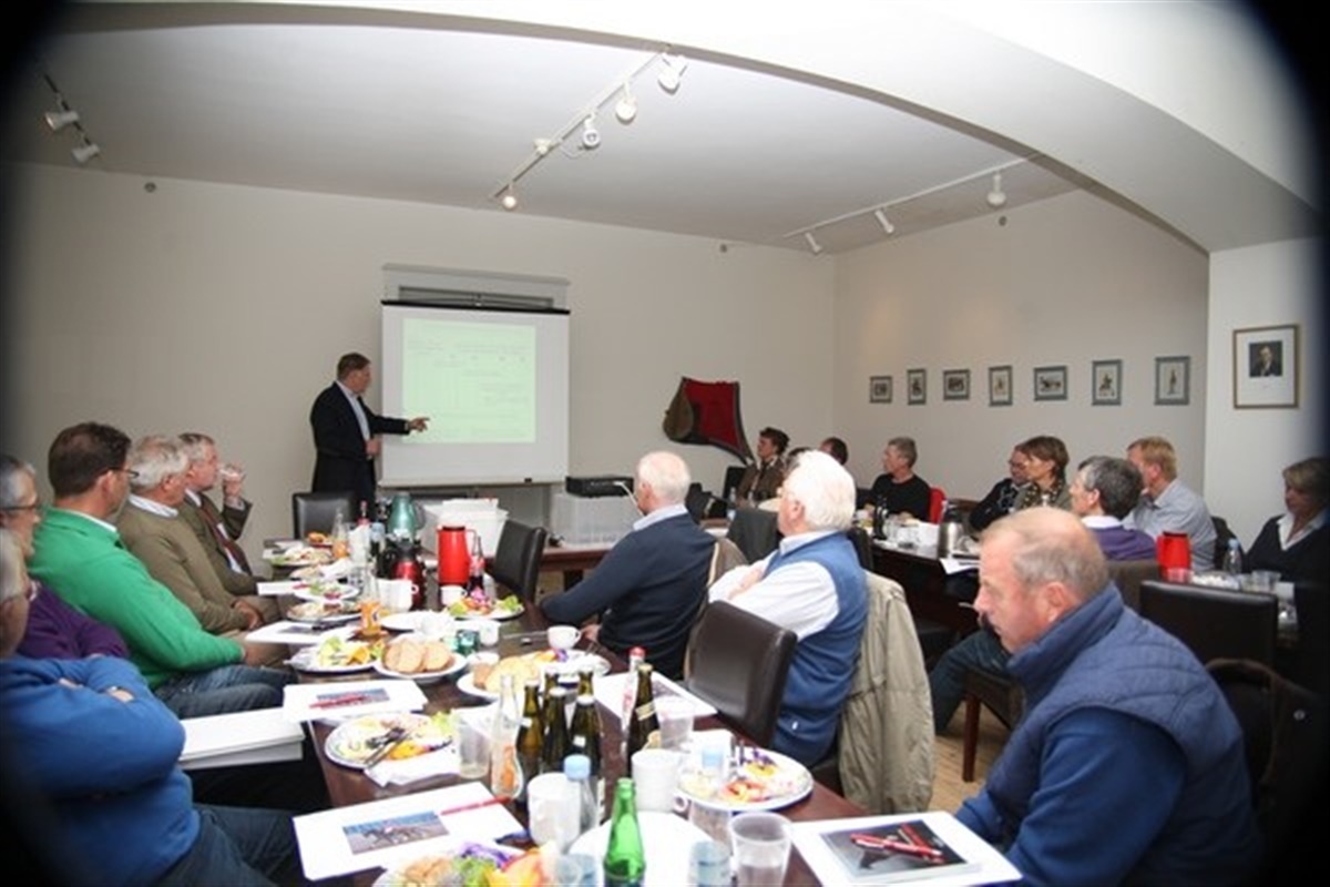 Indsyningen af hingste til 35-dages testen havde i går onsdag usædvanligt besøg, i det en delegation på tretten hestefolk fra det tyske oldenburgerforbund var mødt op for at følge begivenheden. Delegationen havde dagen forinden besøgt Stutteri Blue Hors i Randbøl. Syd for grænsen har man rettet opmærksomheden mod de konkurrerende forbund i Holland og Danmark. Oldenburgerforbundet har i forbindelse med deres overvejelser om at flytte hingstekåringen fra efteråret til foråret valgt at søge inspiration hos Dansk Varmblod. Det initiativ har Dansk Varmblod valgt at byde varmt velkommen. Efter selve indsyningen deltog de tretten repræsentanter for oldenburgerforbundet i en kollegial frokost med Dansk Varmblod, hvorefter formand Jan Pedersen gav en præsentation på tysk af det danske hingsteafprøvningssystem. Anført af avlsleder Dr. Schleppinghof viste det oldenburgerforbundet stor interesse i ikke blot det danske hingstekårings- og hingsteafprøvningssystem, men i det hele taget Dansk Varmblod som avlsforbund og spørgelysten var stor. Gæsterne udviste bl.a. interesse i Dansk Varmblods ridemæssige krav til hingstemødre, røntgenkrav, kriterier for optagelse i springhesteprogrammet, chipmærkning mv.