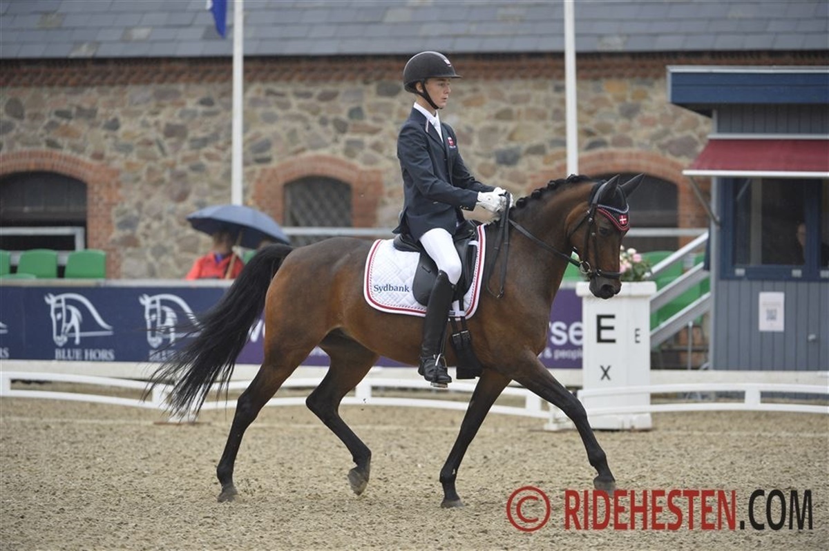 Sara Aagaard Hyrm fra Fladså Rideklub Sydsjælland var bestemt også indstillet på at fremvise de danske ponyrytteres styrke, og med Der Harlekin B indkasserede Sara 74,024%. – et resultat, der placerede hende på en andenplads i klassen lige efter Louise.