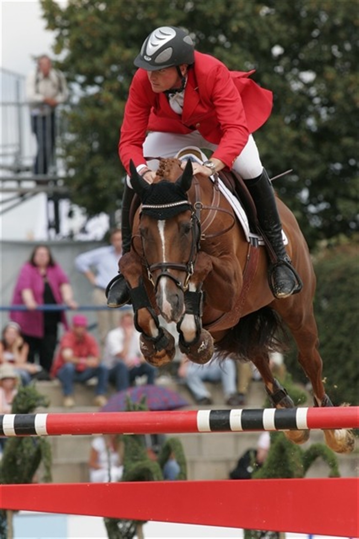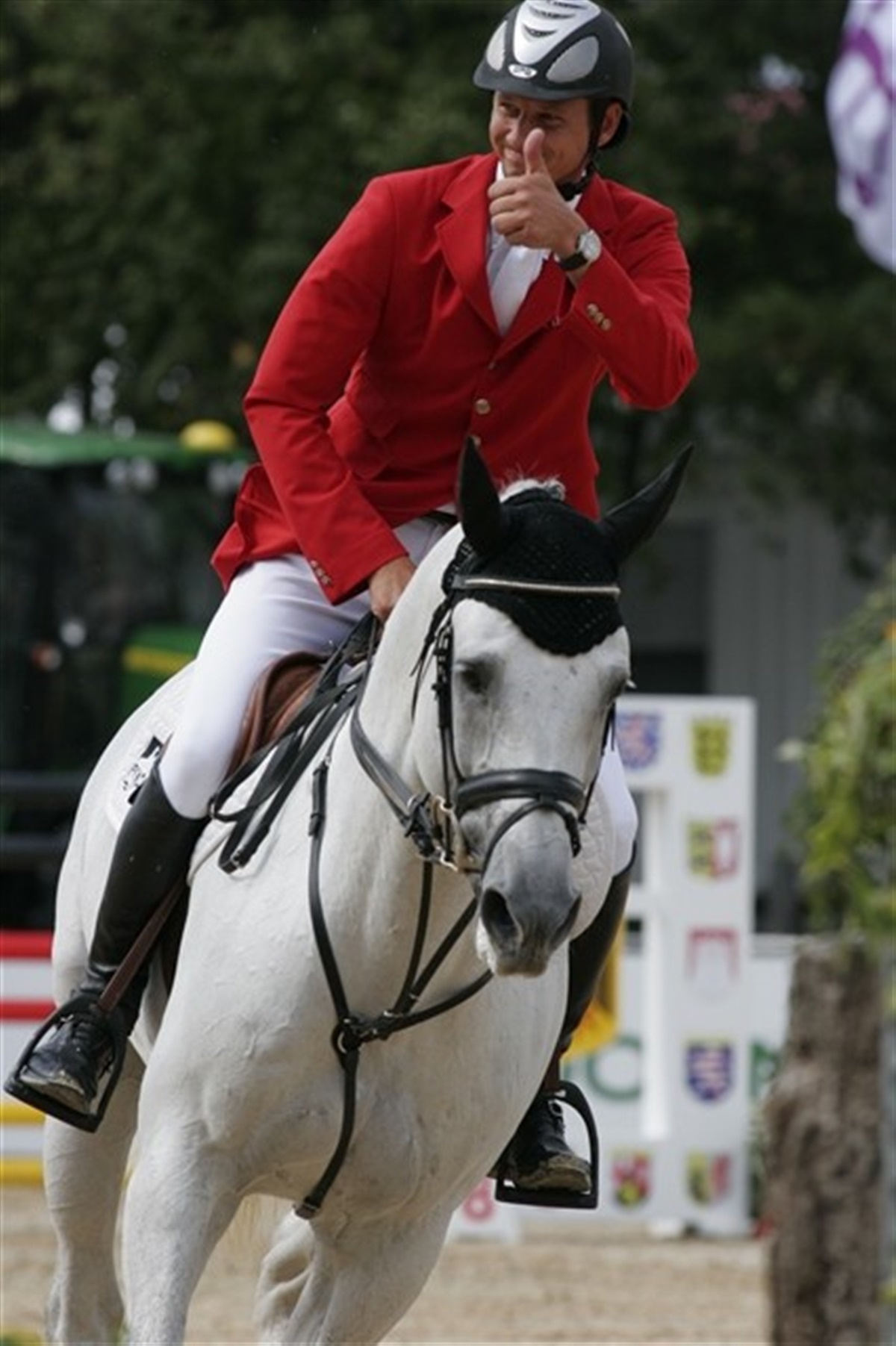 Der skal nok være en eller anden tysker, som efter Grand Prixen i dag i Mannheim ville ønske, at den tyske landstræner Kurt Gravemeier havde gjort brug af reserverytteren i stedet for Marcus Ehning, der blev diskvalificeret i alle tre runder, som afgjorde EM for hold. I dag viste den tyske reserverytter Heinrich Hermann Engemann nemlig storform ved at vinde Grand Prix-klassen her i Mannheim. En særdeles populær sejr, og publikum jublede højt da han og Aboyeur W susede fejlfrit i mål i klassens hurtigste tid. Den, indtil videre, regerende europamester Marco Kutscher red den imponerende skimmel Cornet Obolensky fejlfrit gennem både hoved og omspringning til en andenplads. Thomas Sandgaard og Tina Lund fik hver to nedslag i hovedspringningen.