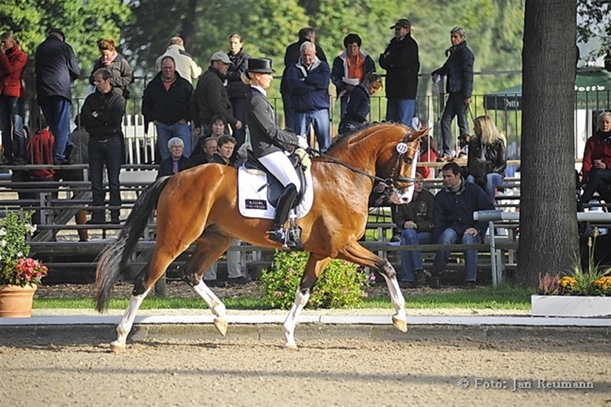 31 femårige og 28 seksårige foreløbigt udtagne dressurheste mødtes idag til den landsdækkende og afgørende udtagelse til WBFSH verdensmesterskabet for unge dressurheste. Dommerne Jonny Hilberath, Klaus Ridder og landstræner Holger Schmezer udtog følgende heste: 5-årige dressurheste Branduardi Hannoveranerhingst v. Breitling W – Weltmeyer Rytter: Katrin Meyer zu Strohen Damon’s Divene Westfalerhoppe v. Damon Hill – Rubin Royal Rytter: Helen Langehanenberg De Champ Oldenburgerhingst v. Daddy Cool – Caprimond Rytter: Anja Engelbart Fürstenball Oldenburgerhingst v. Fürst Heinrich – Donnerhall Rytter: Ines Westendarp Novia Bayerhoppe e v. Stedinger – Alabaster Rytter: Victoria Michalke Showtime Hannoveranervallak v. Sandro Hit – Rotspon Rytter: Dorothee Schneider Sunday Westfalerhingst v. Sandro Hit – Donnerhall Rytter: Anja Wilimzig Reserver: 1. Fairytale, Oldenburgerhingst v. Fidertanz – Quattro B Rytter: Isabel Bache 2. Flynn PCH, Hannoveranerhingst v. Falsterbo – Walt Disney I Rytter: Marcus Hermes 3. Rihanna, Rheinländerhoppe v. Ricardos – Sandro Hit Rytter: Geertje Hesse 6-årige dressurheste Damon Jerome H Rheinländerhingst v. Damon Hill – Guy Laroche Rytter: Uta Gräf Freak Blue Phantom Oldenburgerhingst v. Florencio I – Feinbrand Rytter: Kristine Brinck Møller Horatio Hannoveranervallak v. Hochadel – Matcho AA Rytter: Dorothee Schneider Lezard Rheinländervallak v. Lord Loxley I – Riccione Rytter: Matthias Bouten Schickeria Westfalenhoppe v. Sir Donnerhall I – Weltmeyer Rytter: Helen Langehanenberg Soulmate Hannoveranerhingst v. Sandro Hit – Calypso II Rytter: Senta Kirchhoff St. Emilion Westfalenhingst v. Sandro Hit – Ehrenwort Rytter: Dorothee Schneider Reserver: 1. Sergio Rossi, Oldenburgerhingst v. Sir Donnerhall I – Rosenkavalier Rytter: Kira Wulferding 2. Franz Joseph, Bayerhingst v. Florencio I – Coriograf B Rytter: Ralf Kornprobst 3. Baron de Ley W, Westfalerhingst v. Breitling W – Diego xx Rytter: Brigitte Wittig