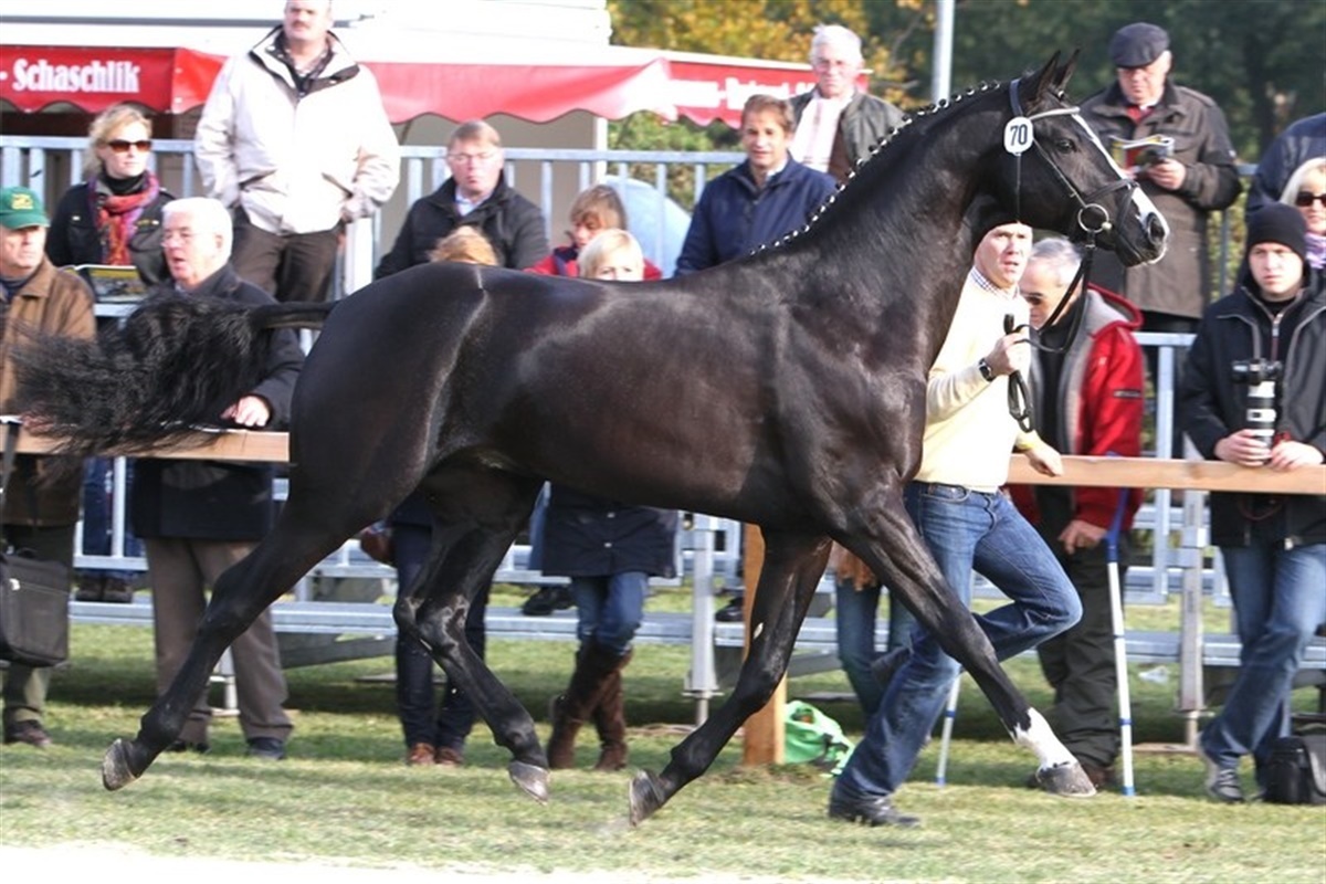 Hingstestationen Katrinelund har sammen med norske Kristin Andresen erhvervet sig den meget interessante kat. nr. 12 - en præmiehingst efter Dancier / Rotspon / Argentan, der allerede på kåringens første dag gjorde sig bemærket med sit helt fantastisk bevægelsesmønster og sin ædle, højtstillede type. Ib Kirk fortæller til Ridehesten.com at hingsten nu skal med hjem til Katrinelund, hvorfra den fortsat skal trænes og gøres klar bl.a. til fremstilling ved DV's hingstekåring i Herning til marts. - Det er en komplet hingst, som vi er rigtig glade for at kunne hente til Danmark, fortæller Ib Kirk. Blue Hors købte kat. nr. 31 - en mørk fuks e. Fürst Grandios / Weltmeyer / Alonso, som Blue Hors direktør Esben Møller glæder sig til at fremstille til hingstekåring i Herning i foråret. Per Skjærbæk fra Stutteri Priess indkøbte også en præmiehingst, nemlig kat. nr. 40 - en fuks efter Londontime / Florestan I / Donnerhall, og også Stutteri Ask var på indkøb i Verden - Stutteriet købte en af de præmierede springhingste, kat. nr. 70, en sortbrun hingst efter Clintord I / Singular Joter I / Quasi Roi med sig hjem til Fyn. Norske JJ Horses, der denne sommer bl.a. havde det bedste dressurbetonede hoppeføl i Dansk Varmblod, købte to unge hingste. Kat. nr. 34 e. Fürst Rosseau / Donnerhall / Weltmeyer, der ikke opnåede kåring, og kat. nr. 43 e. San Amour / De Niro / Volturno, der opnåede kåring. Se hingstene og få mere info om hannoveranerkåringen i Verden via links til højre.