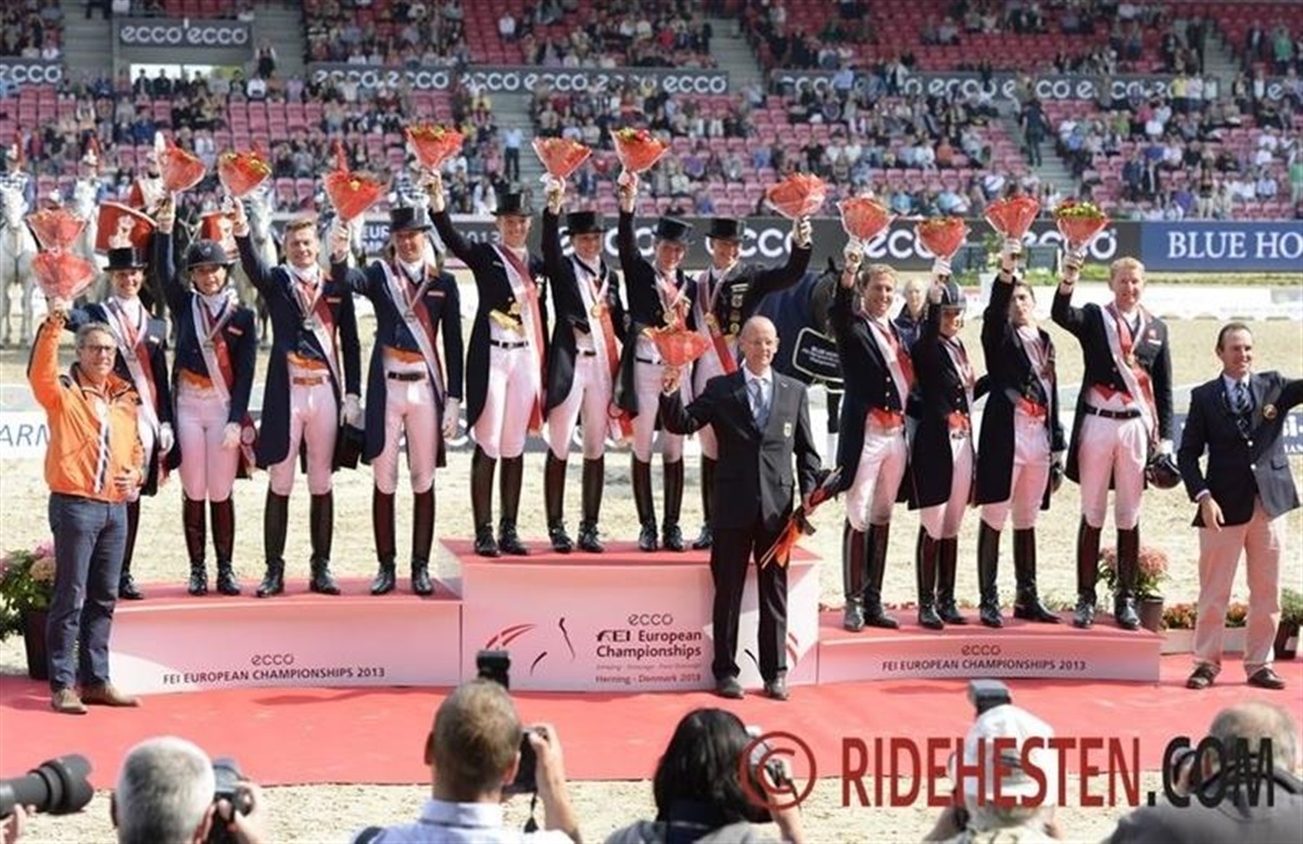 I Blue Hors FEI European Dressage Championship 2013 i Herning blev det en helt utrolig spændende finale i holdkonkurrencen, der afvikledes i Grand Prix i dag. Tyskland fik sammenlagt 234,651, Holland 233,967 og Storbritanien 233,540 - altså meget marginalt!