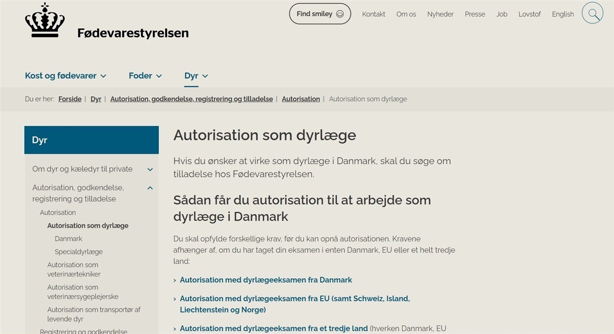 I artiklen oplyses det ikke, hvorfor dyrlægen ikke står på ministeriets liste over autoriserede dyrlæger. Det fremgår ikke, om hun har ansøgt, eller om hendes uddannelse er mangelfuld, og hun derfor ikke kan autoriseres.