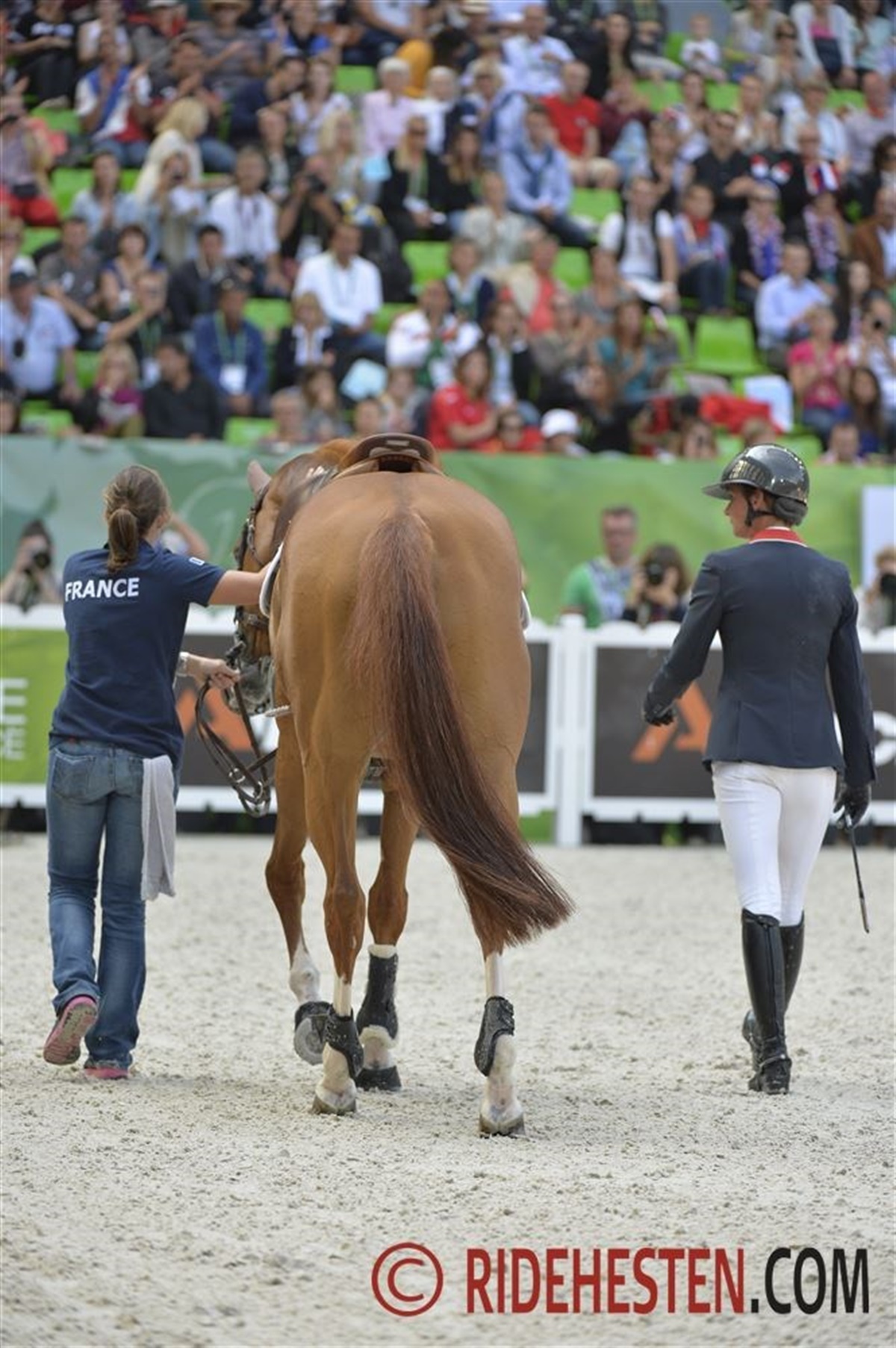 Tophesten Glocks London med Gerco Schröder havde man på forhånd spået en plads i finalen, men i dag fik de 12 fejl og er dermed ude af topkampen. Den fremragende holstenerhoppe Vienna Olympic e. Cassini opdrættet af Berith Nielsen, Hjallerup har tidliger eværet redet af brødrene Schou, nu deltager den i VM med Quatar-rytteren Shaikh Ali bin Khali Al Thani og da de var fejlfire i dag, er de rykket op på en 7. plads.