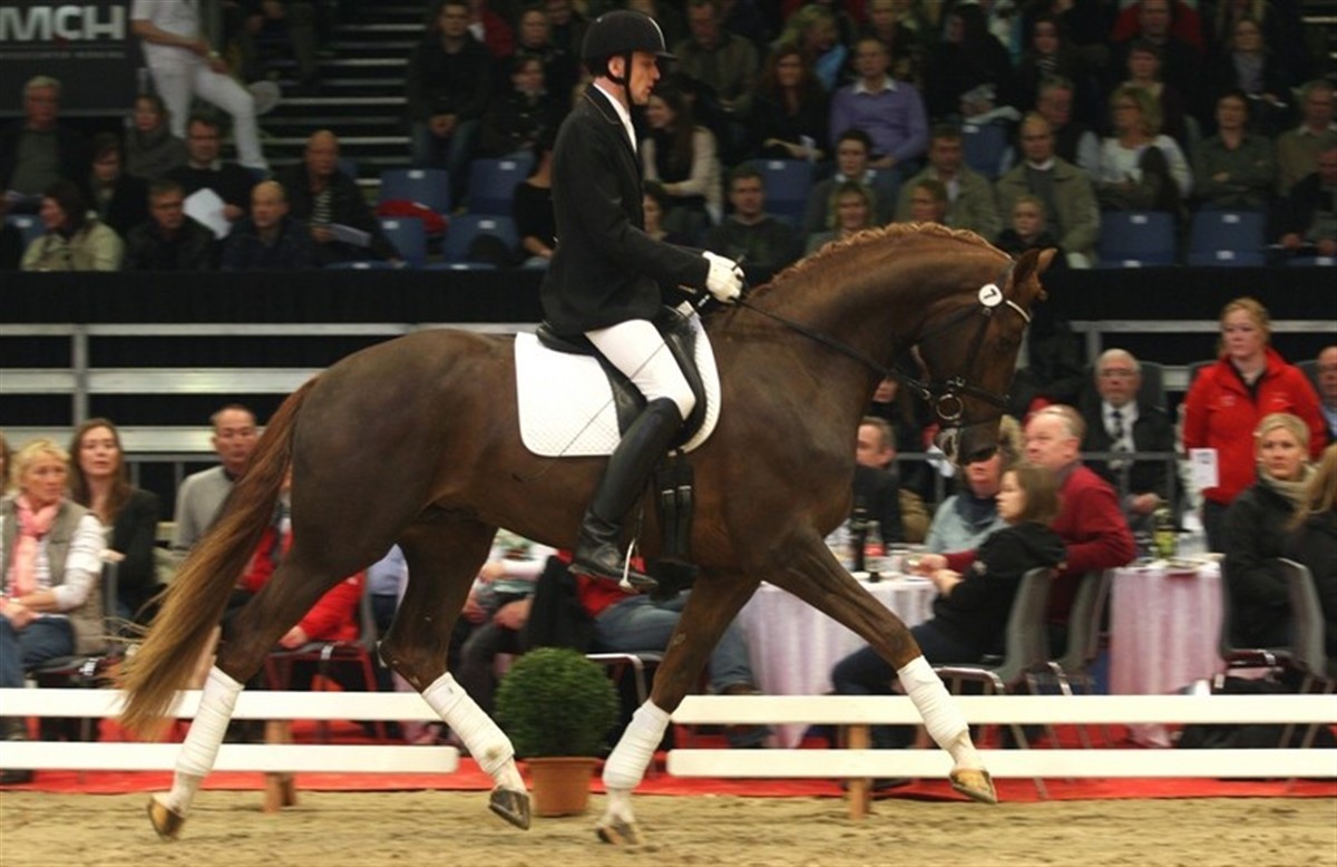 I alt 26 heste kom under hammeren. 54 % af hestene blev reelt solgt, og disse gik for en gennemsnitspris af 163.214 kr. og kostede til sammen 2.285.000 kr. Der blev lagt ud med fire kårede hingste, hvoraf kat. nr. 4 Barolo V. e. Blue Hors Don Romantic var den første i ringen. Her nåede buddene ganske vist op i 350. 000 kr., men den flot redne hingst blev desværre hjemkøbt. Kat. nr. 23 Lillevangs Rush e. Blue Hors Rush Hour blev vist ved hånd, og denne dejlige hingst kan nu imødese en fremtid i Norge, hvortil den blev solgt for 220.000 kr. Sidste kårede hingst under hammeren var kat. nr. 44, springhingsten Charlton Sem e. Cajus, der blev meget overbevisende fremvist i longe. Det er altid en fornøjelse at se en springhingst, der både er af moderne type og har tre dejlige grundgangarter, der også kan få dressurrytterne til at vise interesse. Hingsten, der er helbror til både en guld- og sølvmedaljehoppe, kommer muligvis til at hedde Charlton Ask i fremtiden; i hvert fald blev det Stutteri Ask på Schelenborg Gods, der trak det længste strå i den budduel, der sluttede på 300.000 kr. Da den røde Blue Hors Don Schufro-søn, kat. nr. 7 Katholt’s Bossco, taktfast travede ind i hallen med Hans Jørgen Hoeck i sadlen, stod det klart for de fleste, at her var en ukåret hingst og talentfuld ridehest, der kvalitetsmæssigt kunne sidestilles med de kårede hingste. Hingsten udviste flot ro og overblik og forekom ganske upåvirket af den tætte stemning i hallen. Marianne og Andreas Helgstrand viste interesse i hingsten og bød med til 320.000 kr., inden Blue Hors Aps kunne erhverve sig denne dressurperle for 350.000 kr. Det var klart dressurhingstene, der kunne trække de højeste priser, mens den 5-årige vallak Toftehøjs Credeau e. Crelido, der fører Unghestechampionatet i springning, med hammerslag på 200.000 kr. blev den dyreste springhest.