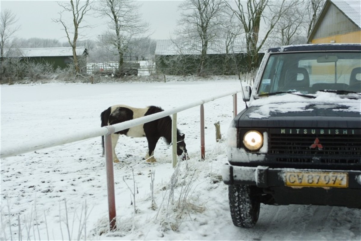 Færdelsuheldet på motorvejen nord for Stenstrup på Fyn indvolverede heldigvis kun en enkelt bil med trailer, og både bilist og hest slap uskadte fra ulykken Bil og hestetrailer endte i grøften, og mens ejeren selv fik den chokerede hest ud af traileren, strøede Falck salt på vejen, så andre bilister kunne slippe for en lignende uønsket terræntur. Kilde: Fyens Stiftstidende
