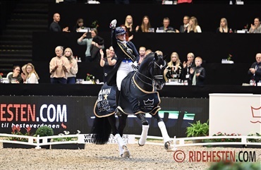 Der var mange kvalitetsfulde heste i dagens klasse, men ingen kom i nærheden af avlshingsten Viva Vegas e. Viva Gold/ Rock Forever, der rides af Blue Hors-chefrytteren Nanna Skodborg Merrald. Ekvipagen fik svimlende 97,167% fordelt over karakterne 9,8 for trav, 8,7 for skridt, 10 for galop, 9,8 i kapacitet og 10 i både ridelighed og harmoni. Det placerede dem på førstepladsen med 13% ned til den næstbedste ekvipage.