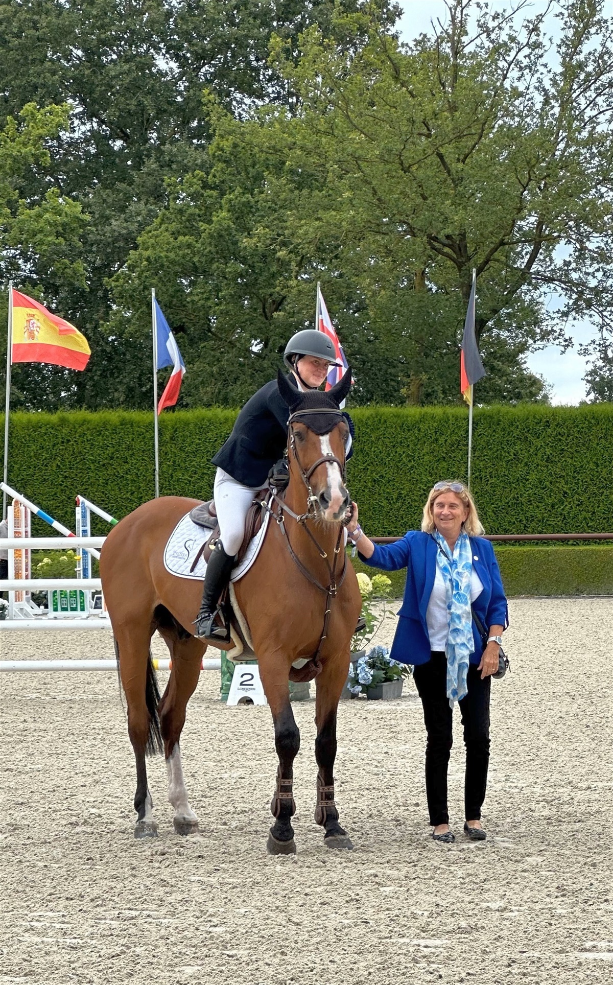 Molly havde heldigvis sin træner med på sidelinjen, da der skulle debuteres. Hun undervises af Peter Flarup, fortæller Mollys mor. Han er netop hjemvendt fra OL i Paris, hvor han var til start i militaryrytternes mesterskab. Heldigvis for Molly havde han tid til at tage med til Holland.
