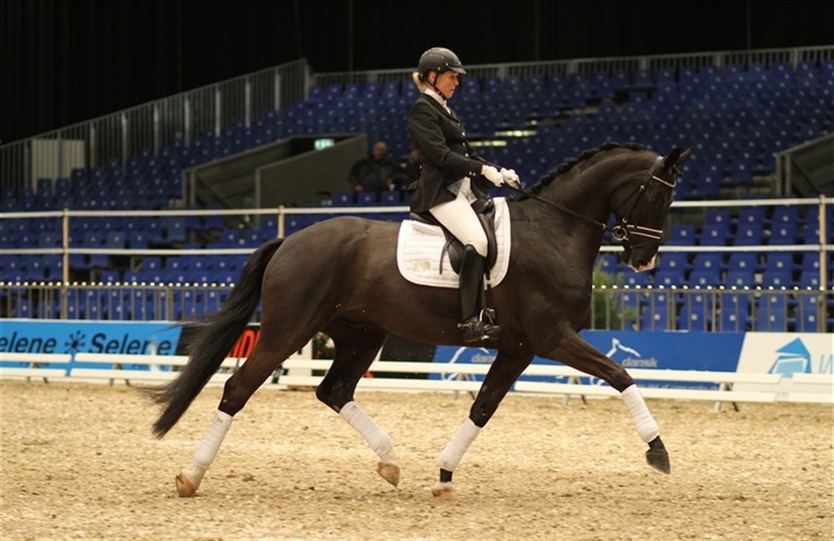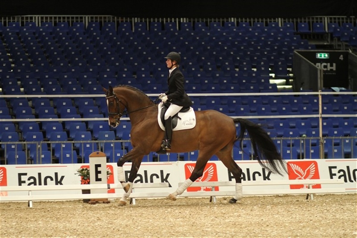 Torsdag formiddag blev dressurhestene vist frem med egen rytter for de to dommere, Birthe Lyder Nielsen og Kurt Christensen. På Unghestechampionatets første dag rider dressurhestene FEI 5-års indledende, og der gives ikke karakterer for øvelser, men derimod for gangarter, ridelighed og kapacitet. Flere af de unge heste var forståeligt nok meget præget af de imponerende omgivelser i hal M, og var lidt spændte og uopmærksomme. Alligevel blev der vist flot ridning og givet karaktere helt i top. Efter dressurens første dag er det den utrolig velgående og velredende Atterupgårds Final Kiss e. French Kiss/Diamond (opdr. Atterupgaard), redet af Sanne Henningsen, der blev honoreret med 9,5 i trav, 9,0 i skridt, 8,5 i galop, 9,0 i ridelighed og 9,0 i samlet indtryk. Dermed sluttede Atterupgaards Final Kiss på 9,0. Andreas Helgstrand fremviste N.O.H.’s Daijoubo e. Daddy Cool/Picandt (opdr. Stutteri N.O.H), der bl.a. fik 9,5 for både trav og galop og endte med et samlet resultat på 8,6. Ægteparret Sophie og Jan Christensen, der sammen driver Noagård Ridecenter, har tilsammen tre heste med i Unghestechampionatet. Det er Romanchell-Sølyst e. Blue Hors Don Romantic/Schwadroneur (opdr. Poul Erik Pedersen) og derudover sølvmedaljehoppen Dodo Havdal e. Blue Hors Don Romantic/Blue Hors Hertug (opdr. Ole From Christensen) og RDH-hoppen Divya Prydsholm e. Blue Hors Don Schufro/Aquilino (opdr. Maja Guldborg Truelsen). Det er værd at bemærke at ingen af hestene fra Noagård har gået med en ridelighedskarakter under 8,5 og Divya Prydsholm er sågar blevet tildelt dagens højeste karakter for ridelighed, nemlig 9,5. Sophie og Jans flotte arbejde afspejles også direkte af den foreløbige top-fem, hvor Noagård står bag 3 ud af fem heste. Efter dressurens første dag ser en foreløbig top-fem således ud: 1: Atterupgaards Final Kiss – 9,0 point 2: Romanchell-Sølyst – 8,9 point 3: N.O.H.’s Daijoubo – 8,6 point 3: Dodo Havdal – 8,6 point 5: Divya Prydsholm – 8,5 point Følg med på Ridehesten.com hvor du bl.a. kan se webTV og interviews fra Unghestechampionatet