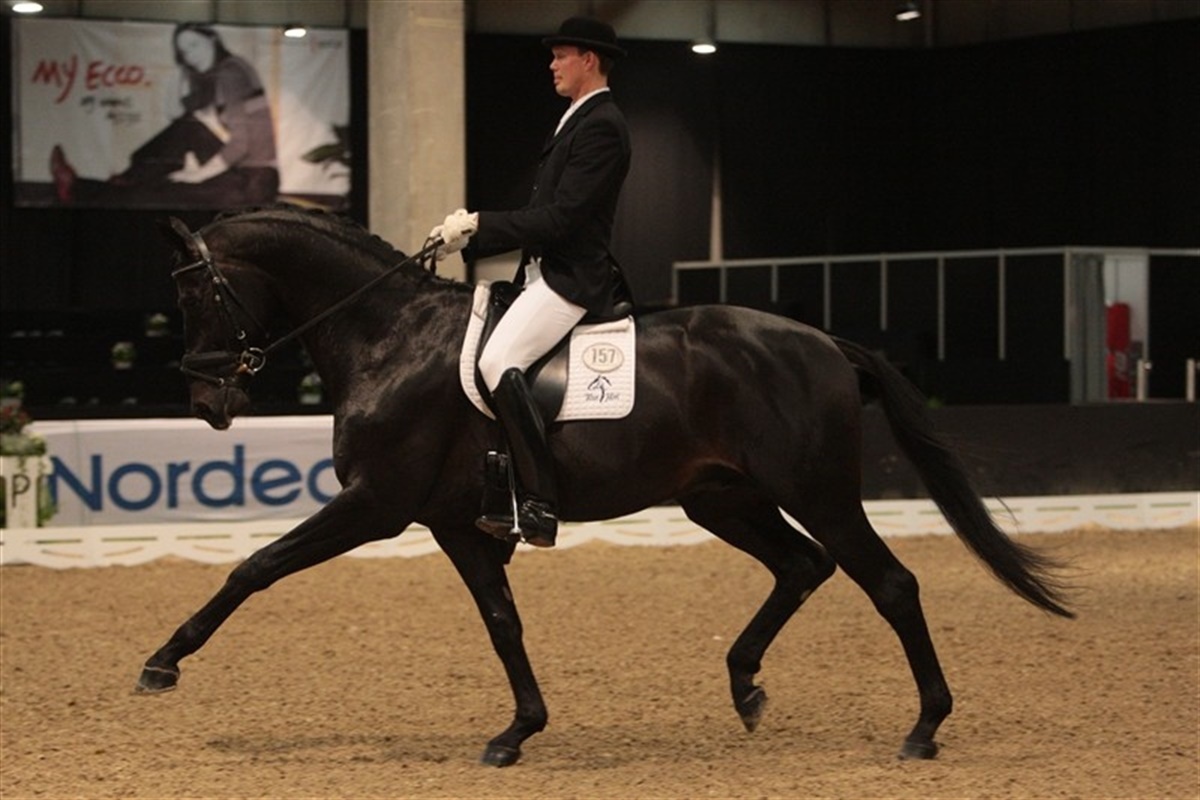 Dagens championatskvalifikationer ved JBK Horse Shows sluttede med klassen for de 6-årige heste. De afsluttede en ganske interessant dag i Odense Congress Center, hvor der i høj grad var noget at begejstres over i championaterne for alle årgange. I dagens kvalifikation blev det til sejr til den tidligere Unghestechampionatsvinder Charmeur e. Crelido redet af Astrid Gemal med 8,44 points - karaktererne fordelte sig med 8,6 for trav, 8,5 for skridt, 8,2 for galop, 8,4 for ridelighed og 8,5 for samlet indtryk. Dermed sendte hun avlshingsten Blue Hors Hotline e. Hofrat redet af Sune Hansen ned på andenpladsen. Hingsten havde ellers ført klassen med 8,28 points indtil Gemal red på banen som næstsidste rytter. Hotlines karakterer var som følger: 8,6 - 8,0 - 8,4 - 7,9 - 8,5. Det blev Blue Hors' berider Maria Anita Andersen som red sig ind på tredjepladsen med Robbie W e. Rubin Royal med 8,24 points fordelt således: 8,2 - 8,2 - 8,2 - 8,4 - 8,2. Dommerne i klasserne i dag var Anne-Mette Binder, berider Martin Holfelt og tyske Peter Holler. De otte bedste 6-års heste i finalekvalifikationen, der dermed er sikret direkt adgang til fredagens finaler blev: 1 150 CHARMEUR - DV Gelding\Ch.\2003\Crelido\ Astrid GEMAL (DEN) 8.44 84.40 2 157 BLUE HORS HOTLINE - HANN Stallion\Black\2003\Hofrat\ Sune LAUST HANSEN (DEN) 8.28 82.80 3 161 ROBBIE W - OS Gelding\Grey\2003\Rubin Royal\ Maria Anita ANDERSEN (DEN) 8.24 82.40 4 154 QUITE LOVELY - SV Gelding\Bay\2003\Quite Easy\ Karin NISSEN (DEN) 8.12 81.20 5 151 LUSTIG - RHEIN Gelding\dBay\2003\Leardo\ Thomas SIGTENBJERGGAARD (DEN) 8.06 80.60 6 171 SPIRIT LOTUS - DV Gelding\Bay\2003\Salomon\ Lars BÆKGAARD (DEN) 8.00 80.00 7 158 WELTLIEBE - DV Gelding\Ch.\2003\Weltjunge\ Sandra SKODBORG MERRALD (DEN) 7.88 78.80 8 162 ULLERUPS MüLLER - DV Gelding\Bay\2003\Münchhausen\ Jim RASMUSSEN (DEN) 7.74 77.40