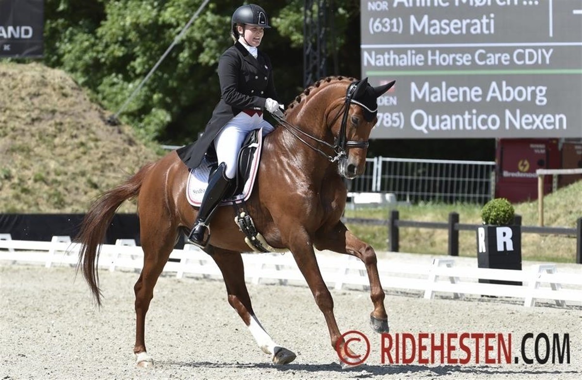 Mens Sara van Deurs Petersen og Caroline T. Elsner i går red flotte resultater hjem for Danmark, var det i dag Malene Aborg og Karoline Rohmanns tur. Malene var reserve til holdet og blev udtaget i sidste uge, hvor Josefine Hoffmann måtte melde fra, da Hønnerups Driver desværre ikke var rengående. Med sin kun 8-årige Quantico Nexen e. Quaterback/ Argentinus (opdr. Stutteri Nexen v/ Elin Houe og Hans Andersen) red Malene Aaborg 66,617% ind til holdet. Det lagde ekstra pres på den sidste danske rytter Karoline Rohmann, der med hoppen Noosa Melody e. Blue Hors Don Romantic/ Schwadroneur (opdr. Else Rohmann) ikke helt kunne præstere sit sædvanligt høje niveau. Ekvipagen opnåede 66,382%, og holdet sluttede som nr. 5 i holdkonkurrencen.