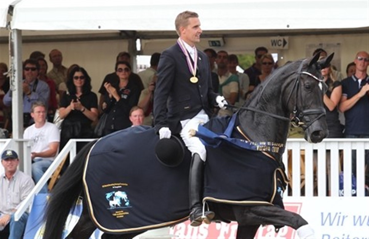 De danske tilskuere skabte nogle fantastiske ramme ved VM i Verden - de jublede af alle heste fra alle avlsforbund, men især naturligvis over de fire danske finalister. - Jeg troede en overgang jeg var i Parken, sagde Andreas med at bredt smil da han mødtes efter sin sejr med hundrede danske avlere og ryttere der var samlet til champagne bag dressurstation. Da den danske nationalmelodi rungede ud over stadion, sang danskerne med. Det var fantastisk at være dansk i Verden i dag, da Uno Donna Unique igen sikrede sig et 10-tal for trav. Den elegante hoppe dansede fra konkurrenterne og dommerne næsten flød over med superlativer over den fantastiske danske varmblods hoppe. Det var dog knap så herligt, da dommerne tilsyneladende følte de måtte statuere et eksempel og gav Hønnerups Driver meget dårlige points. Danskerne buede og tyskerne jublede, det var absolut ikke noget der klædte mesterskabet. Dommerne fandt bl.a. at den ekspressive hest viste passageagtige trin í overgangene. Som Andreas forklarede på pressemødet, så er Driver født sådan, med et helt ekstra gear. Men da der ikke findes mange heste af den kvalitet i verden, så blev det åbenbart noget af en udfordring for dommerne, at sætte karakterer på den pragtfulde hest. Overdommerne pointerede også på pressemødet, at det var en potentiel verdenshest. Læs mere i magasinet Ridehestens septembernummer. Maria Andersen red den danskfødte oldenburger hoppe Rebelle ind på 4. pladsen og Skovens Rafæl med Lotte Skjærbæk fulgte lige efter på femtepladsen, mens Hønnerups Driver sluttede på 12 pladsen i finalen. Så er VM i Verden slut for dette år med pragtfulde danske placeringer