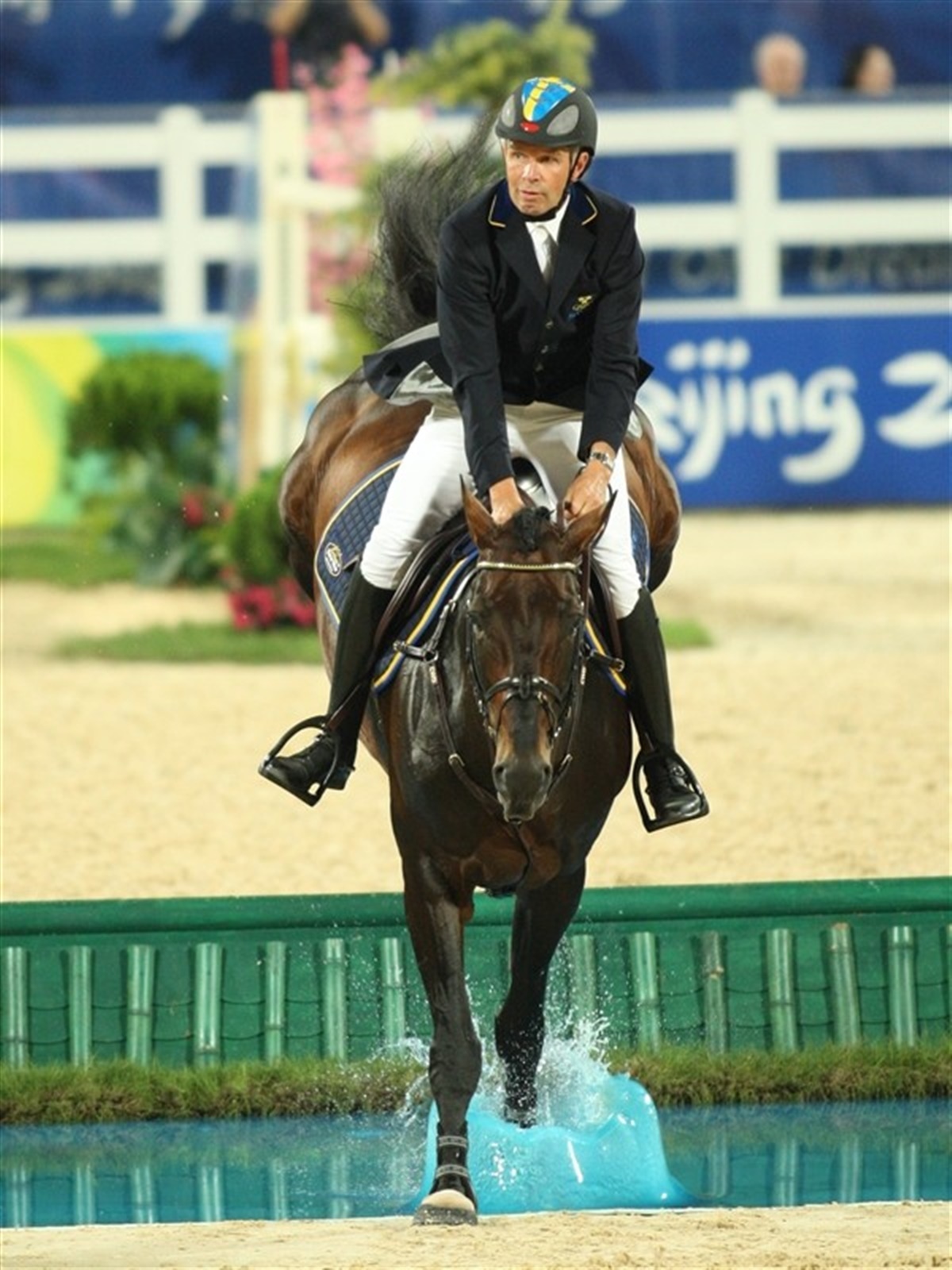 I aftes så de amerikanske ryttere meget stærke ud, og efter deres topplacering i den indledende konkurrence, så det ud til at de ville sætte sig hårdt på guldmedaljen, men sølvvinderen fra WEG i Aachen Authentic bremsede ind i trækombinationen med Beezie Madden, og så blev mesterskabet igen åbent. - Han begyndte at slå voldsomt med hovedet hen mod trekombinationen, så han så slet ikke forhindringen, fortalte Madden efterfølgende, han reagerede som havde han vand eller en flue i ørene. USA og Schweiz ligger hver med 12 fejl, svenskerne kom stærkt tilbage efter en svag åbningsspringning og ligger nu på 3. pladsen med 13 fejl. England følger efter med 16 fejl, men det bliver vanskeligt for englænderne at opretholde deres placering da holdets ankermand John Whitaker har måttet tage Peppermill ud af konkurrencen da hesten var tydeligt øm i ryggen, inden konkurrencerne overhovedet gik i gang, måtte hans bror Michæl trække sig da Portofino var halt. I lighed med England har Canada 16 fejl på fjerdepladsen, med Eric Lamaze som bedste rytter med to fejlfrie runder bag sig. De hollandske verdensmestre deler 6. pladsen med nordmændene med i alt 17 fejl. Den helt store overraskelse er tyskerne, som besætter sidstepladsen med 20 fejl. Noget er tydeligvis gået helt galt i deres forberedelser til OL, for ingen af de tyske heste springer overbevisende. Springningen begynder i aften kl. 19.15 i Hongkong (6 timer tidligere i Danmark).