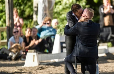 Det har været en våd dag i Silkeborg, og til trods for, at banerne, i forhold til de store mængder vand, har gjort det godt, så var en del heste alligevel noget utilfredse med at skulle gå gennem vandpytterne. Dog var det dejligt at se, at publikum trodsede vejret, og fulgte troligt med på banerne, som den rigtige stemning for jysk rideuge skal være! I morgen foregår bl.a. den populære kür-klasse, hvor alle ekvipager er klædt ud. Det er et af de absolutte højdepunkter for Jysk Rideuge.