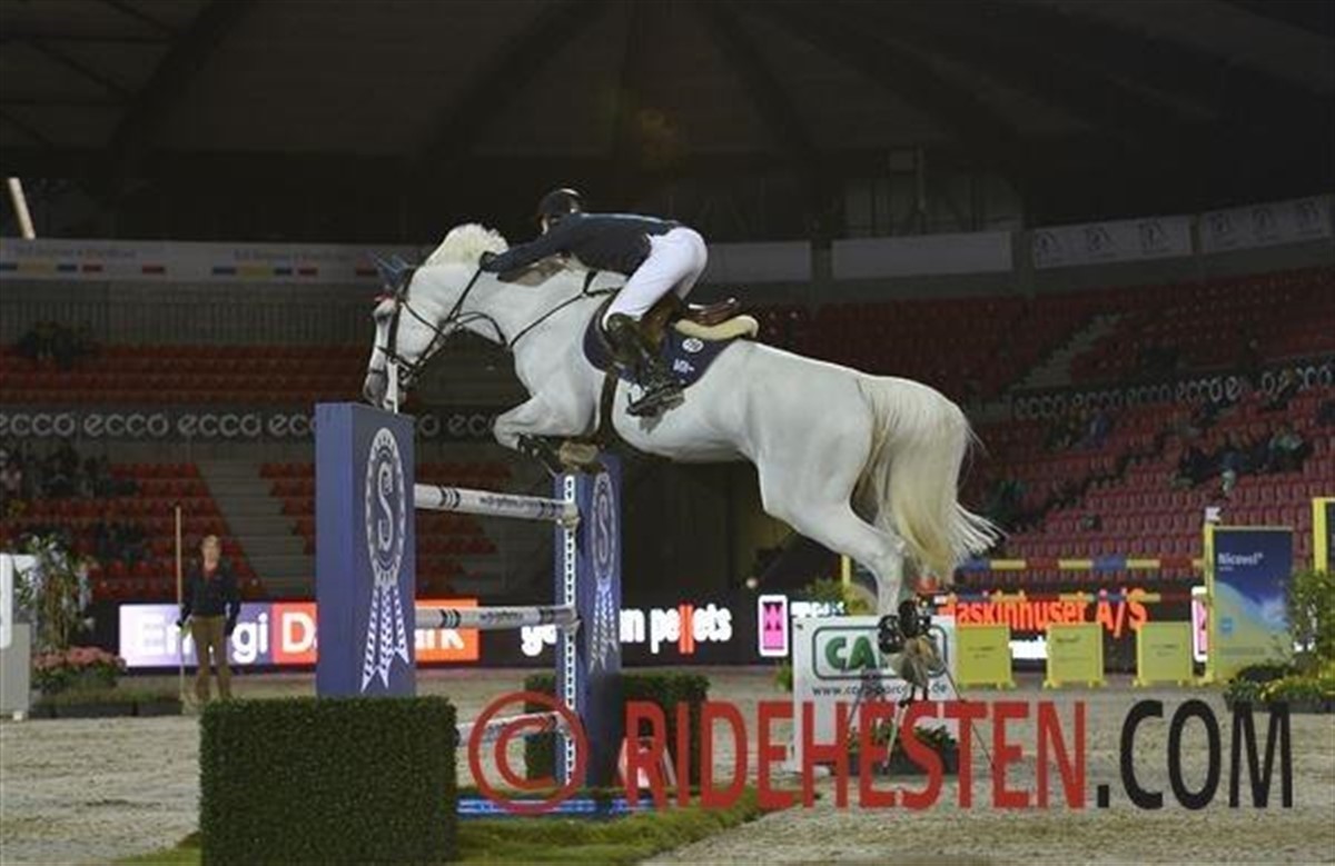 Spændingen var på sit højeste i Olympia i går, da femte afdeling af Longines FEI World Cup i springning blev afviklet og de tre bedste ekvipager efter omspringningen sluttede indenfor en margin på 0,12 sek.