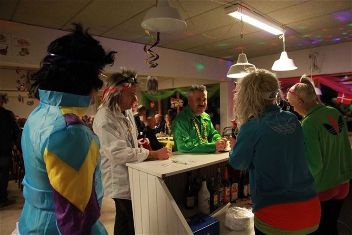 Om aftenen var det så tid til fest – og temaet var ”De glade 80’ere”. Hallen var pyntet festligt op og alle gæster kom i vilde 80’er outfits. Aftenen startede kl. 18 med velkomstdrinks, derefter blev der serveret en lækker tre retters menu – og så startede underholdningen, forskellige sjove indslag og live musik – festen blev sluttet af med natmad – inden Vejle Rideklub igen gik til ro efter et flot og velbesøgt 80 års jubilæum.