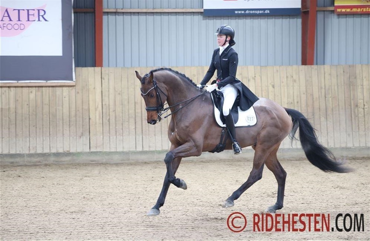 Det var henholdsvis Cecilie Dybro Jensen med Zagori e. Blue Hors Zack/Sir Donnerhall II (opdr. Hans-Heinrich Brüning), der red sig ind på en flot førsteplads, og lige i hælende havde hun Caroline Palsgaard med Darwin Toftagergaard e. Blue Hors Romanov/Aquilino (opdr. Jeannie Logan/Svend Roed Larsen), der red sig ind på en andenplads.