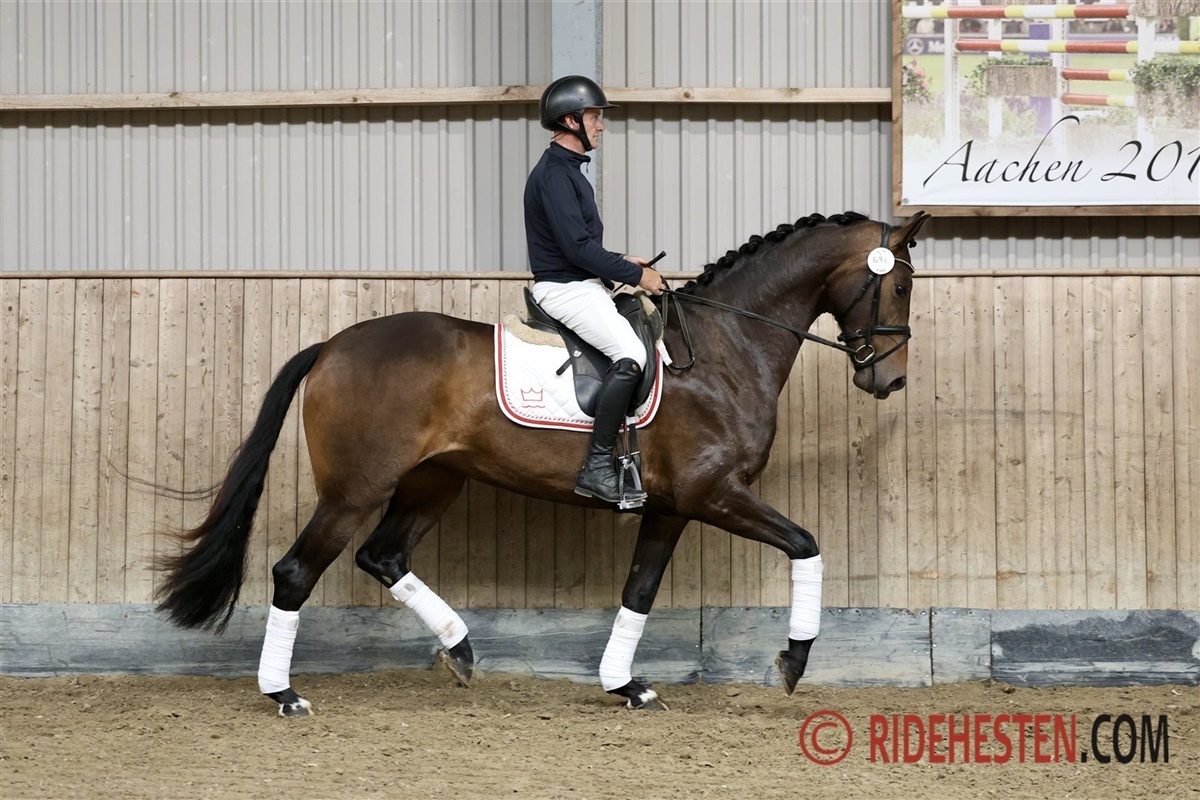 – Det er en storrammet og vellinjeret hoppe, passende højtstillet, og hun har en god harmoni i sine partier, og hun har vist en funktionel bevægelse. Hun fik også den højeste ridelighedskarakter, idet hun opnåede 8,5 fra dommerne.