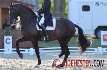 Anne Troensegaard fremviste den efterhånden 9 år gamle, sortbrune trakhenervallak, Kipling e. Hofrat/ Hohenstein. Han er en imponerende hest med tre særdeles god gangarter. Rune lægger ikke alene vægt på, at en hest skal have tre gode gangarter. Den skal faktisk have tre gode gangarter i hver gangart. – En hest skal kunne gå meget kort, meget stort og i arbejdstempo i hver gangart. Når det falder dem naturligt, som det gør for Kipling her, er det hele lidt lettere, forklarede han. Anne og Rune arbejdede med de svære galoppirouetter, hvor Rune fik Anne til at lave dem lidt større. – Det er bedre her i en træningssituation, at pirouetterne er gode og lidt større, end at de er små, og hesten så ikke bliver ved med at galoppere i bag.