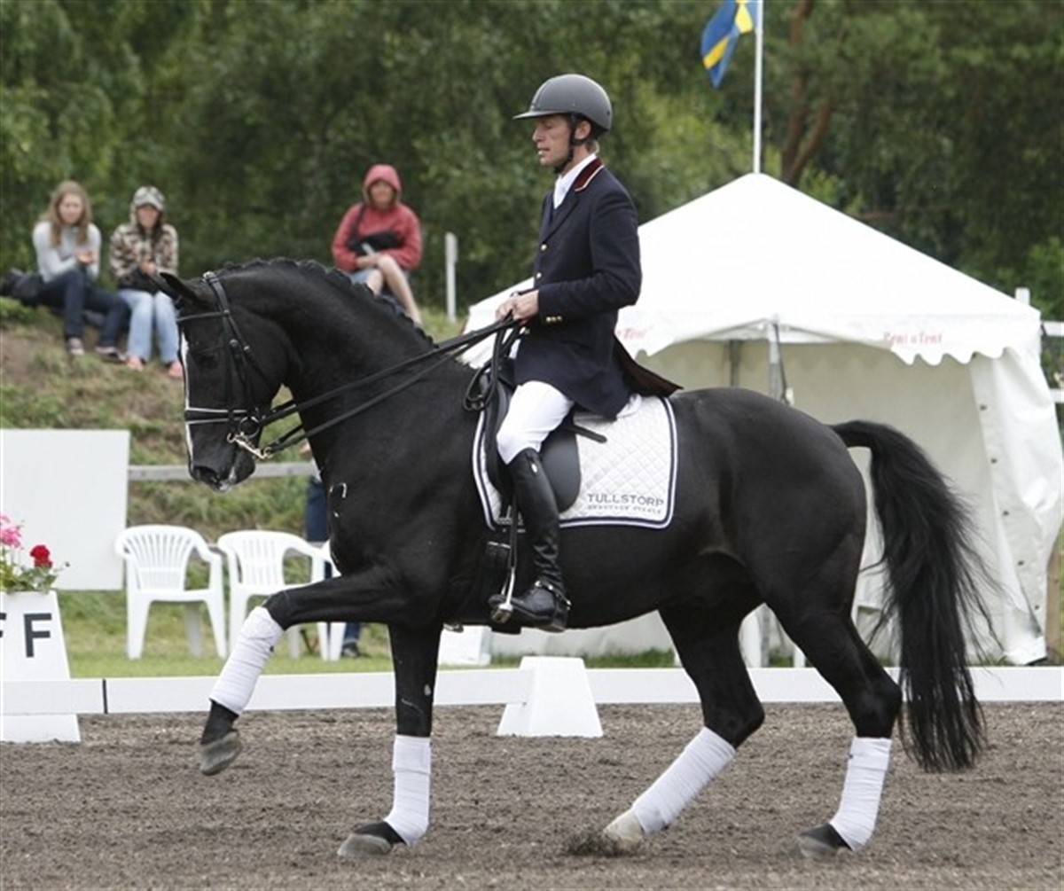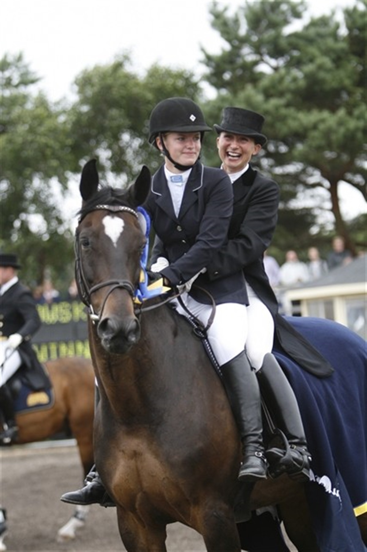 Landstræner Rudolf Zeilinger burde have været til stede på dressurbanen her til morgen i Falsterbo, for der dukkede en ny, dansk dressurstjerne op. Thomas Velin red en forrygende dressuropvisning på en af Jan Brinks dressurheste, og smilet var bredt på den danske springrytter, da han til publikums store jubel viste fremragende passage og piaffe arbejde. De internationale spring- og dressurryttere morede sig herligt her til morgen i en showklasse, som blev vundet af det svenske par Nathalie Adelborg og Minna Telde foran danske Jim Rasmussen, der havde lånt Kari og Jack Munch-Christiansens springhingst Candor til lejligheden, og de var hurtigst over forhindringerne. Jim var parret sammen med den svenske OL-rytter Peder Fredricson, som sprang sin dressurhest ind og ud af banen. Thomas Velin og Jan Brink, som havde lånt Thomas' springhest Cantra Twin sluttede på tredjepladsen. En herlig måde at starte dagen på i Falsterbo, hvor solen desværre er blevet væk under et tæt skydække. I eftermiddag er der Falsterbo Derby og finale i 6-års championatet for springheste - begge klasser med dansk deltagelse.