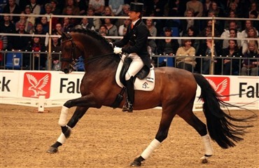 Aftenens helt store Grand Prix-drys blev Nanna Skodborg Merrald og avlshingsten Blue Hors St. Schufro, der red undervisning ved Nannas mangeårige træner, berider Michael Søgaard, foran publikum.
