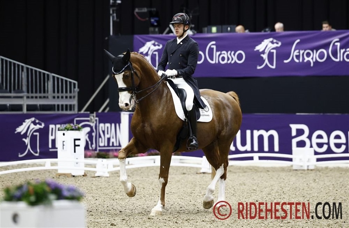 Alexander har med sin 13-årige Inspiration PF e. Everdale/ Calido I opnået 69,065% og tiendeplads, mens Karoline med 17-årige Jakas Don Louvre e. Blue Hors Don Romantic/ Lauries Crusador xx (opdr. Karina og Jan Kofoed-Nielsen) sluttede på 67,870% og blev nr. 12 i klassen. Således skal vi se begge danske ryttere igen i morgen, hvor klassen starter kl. 10.