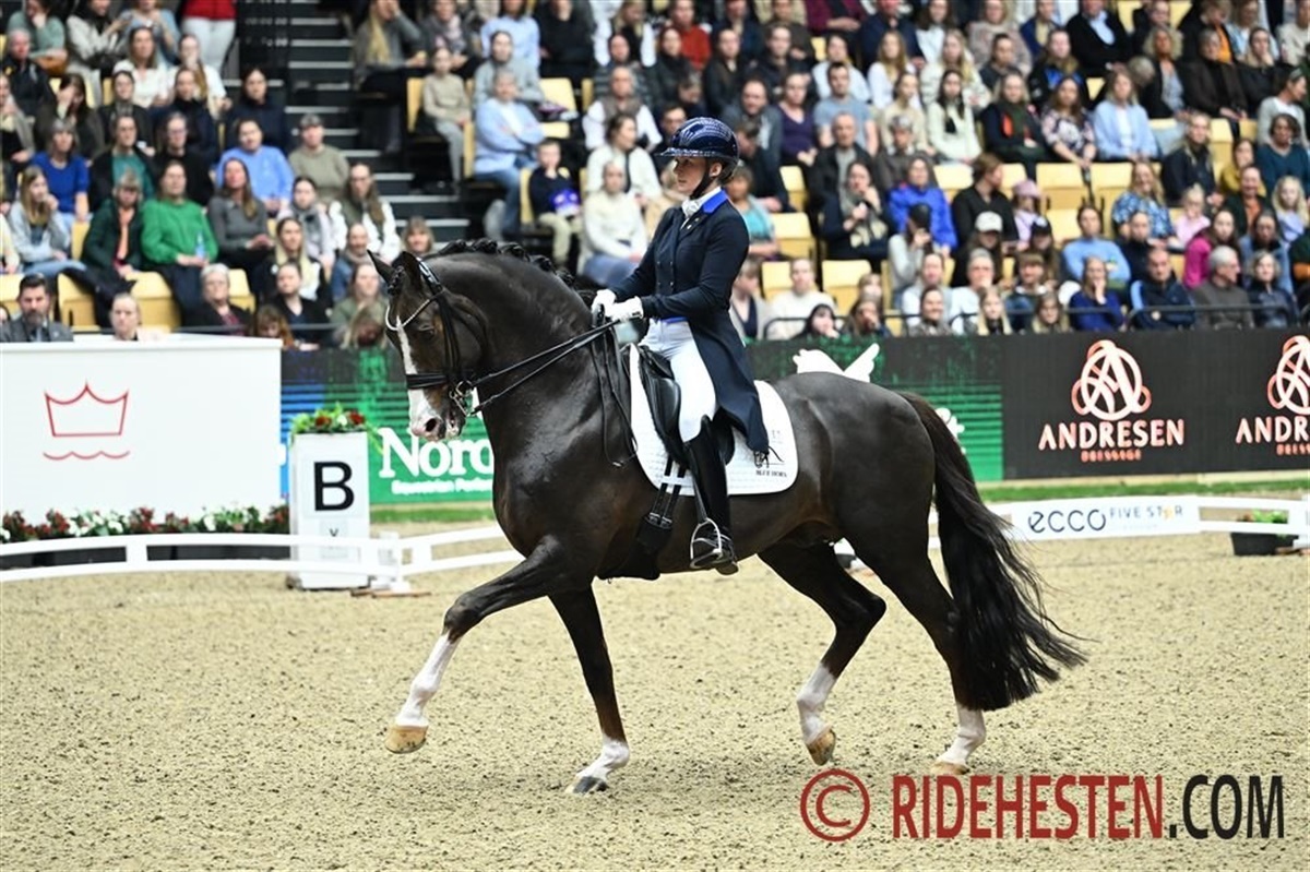 Førstepladsen blev besat af britiske Charlotte Fry, der har base i Holland hos danske Anne van Olst og hendes mand Gertjan, der sammen driver Van Olst Horses. Med den regerende verdensmester fra Herning 2022, Glamourdale e. Lord Leatherdale/ Negro, red hun til 79,500%.