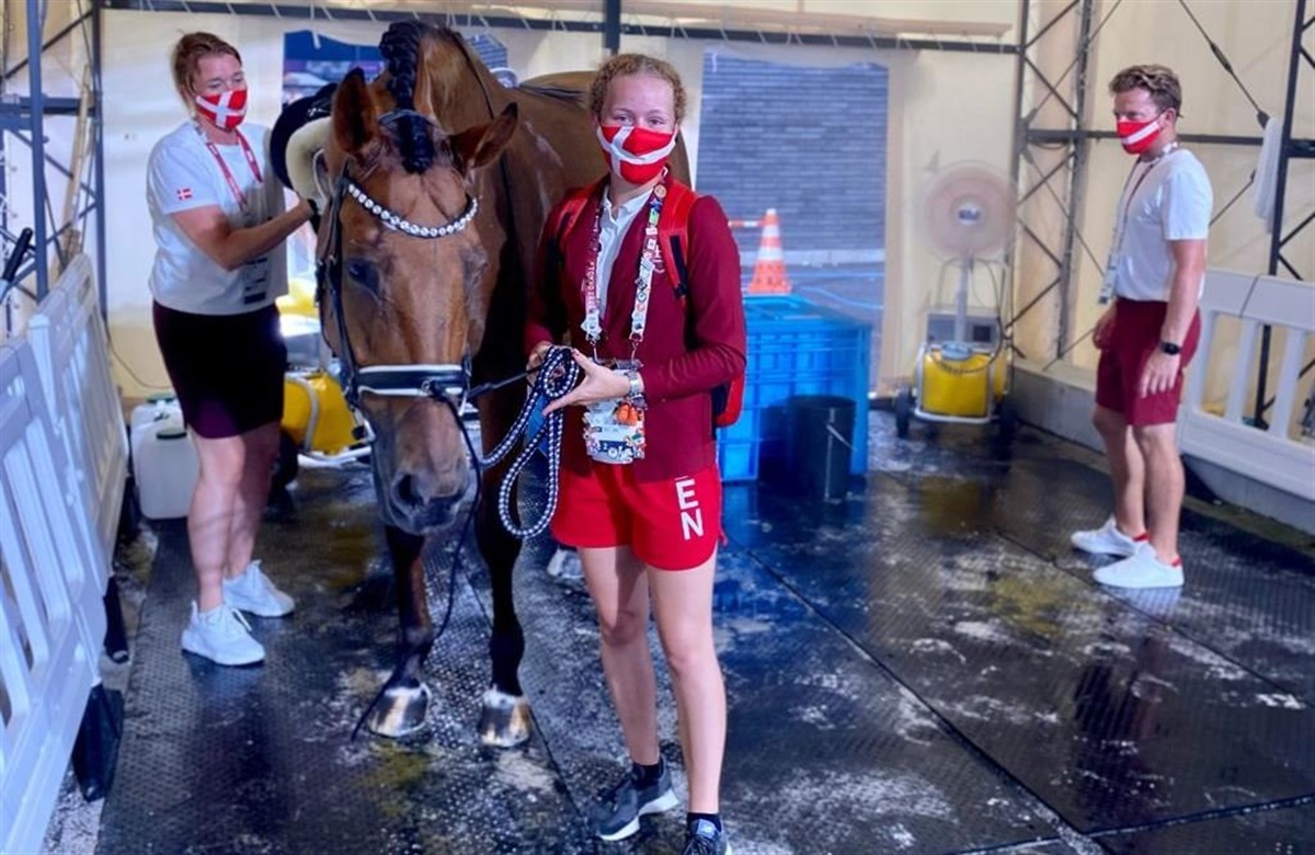Der er utroligt varmt i Tokyo, men både ryttere og heste er godt trænet hjemme fra. Der har været medbragt en romaskine i en lastbil til Aachen, hvor rytterne kunne træne for at blive klar til de varme forhold. Det er oftest rytterne der bliver hårdest ramt, men indtil nu mener rytterne ikke det er et problem. Hestene har taget det rigtig pænt, fortæller Astrid.