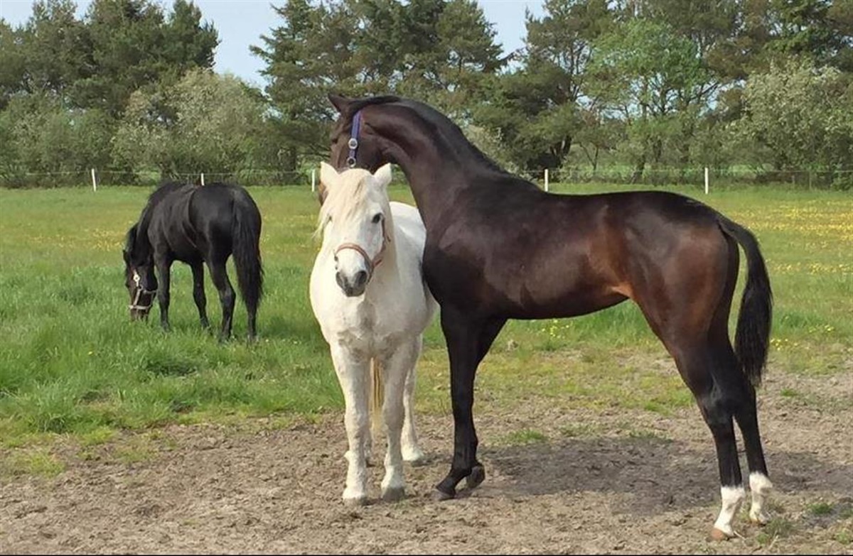 Hesselholts Marvin Connemare (den hvide pony) er 30 år. Han har været elevskolepony på Årslet Rideskole i 17 år.