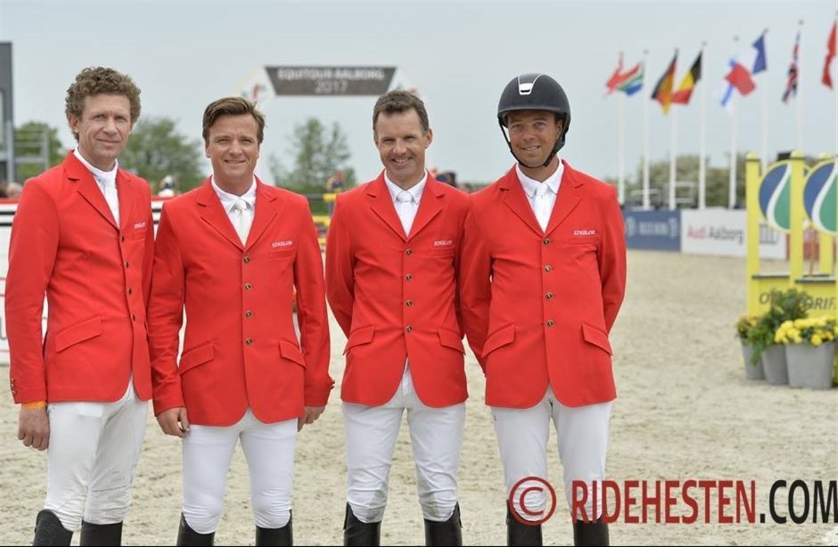 Danmark lå efter to ryttere godt placeret, men desværre fik Thomas Sandgaard to nedslag med Amarone, og det satte Thomas Velin, holdets sidste rytter under pres. Der gik et suk gennem publikum, da Thomas og Chopin van het Moleneind rev den første forhindring, men Thomas holdt hovedet koldt og red resten af banen fejlfrit, og med 8 fejl ligger Danmark på en delt tredjeplads.
