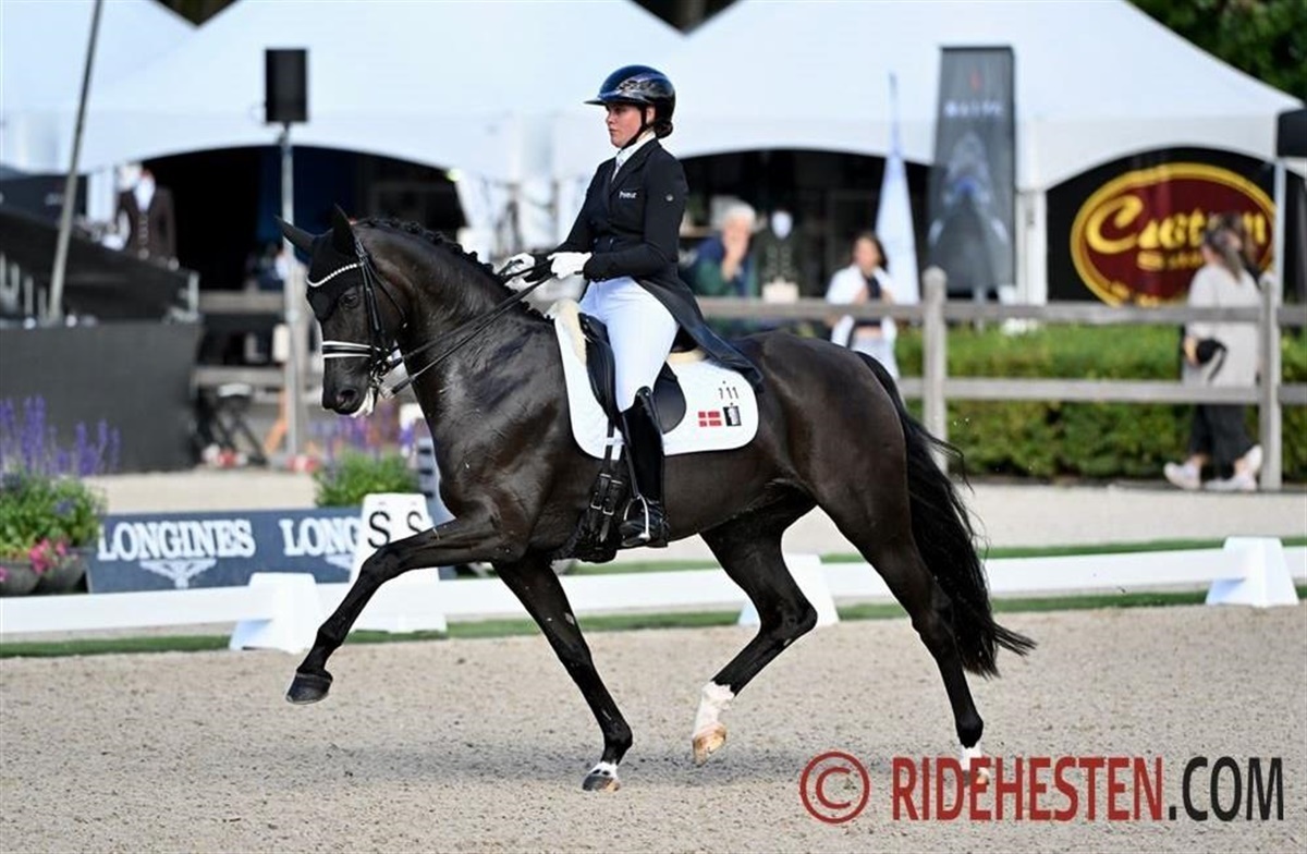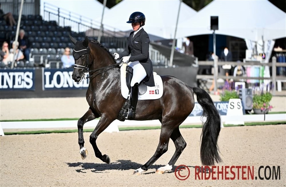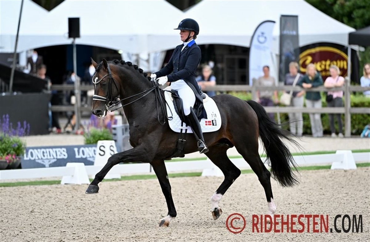 Den massive række af fem hingste i toppen blev fulgt op af tre hopper, heriblandt DV-hoppen Lyngbjergs St. Paris e. Blue Hors St. Schufro/ Blue Hors Rockefeller (opdr. Bente Børgesson), der har præsteret meget konsekvent under Victoria E. Vallentin. Parret vandt guld for 5-års, blev nr. 4 for 6-års og nu også i bedste halvdel af finalefeltet for 7-års. Imponerende præstation. Hoppen er ejet af Four Oaks ApS og Vallentin Dressage ApS.